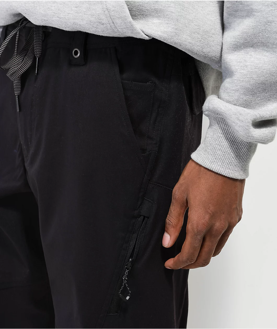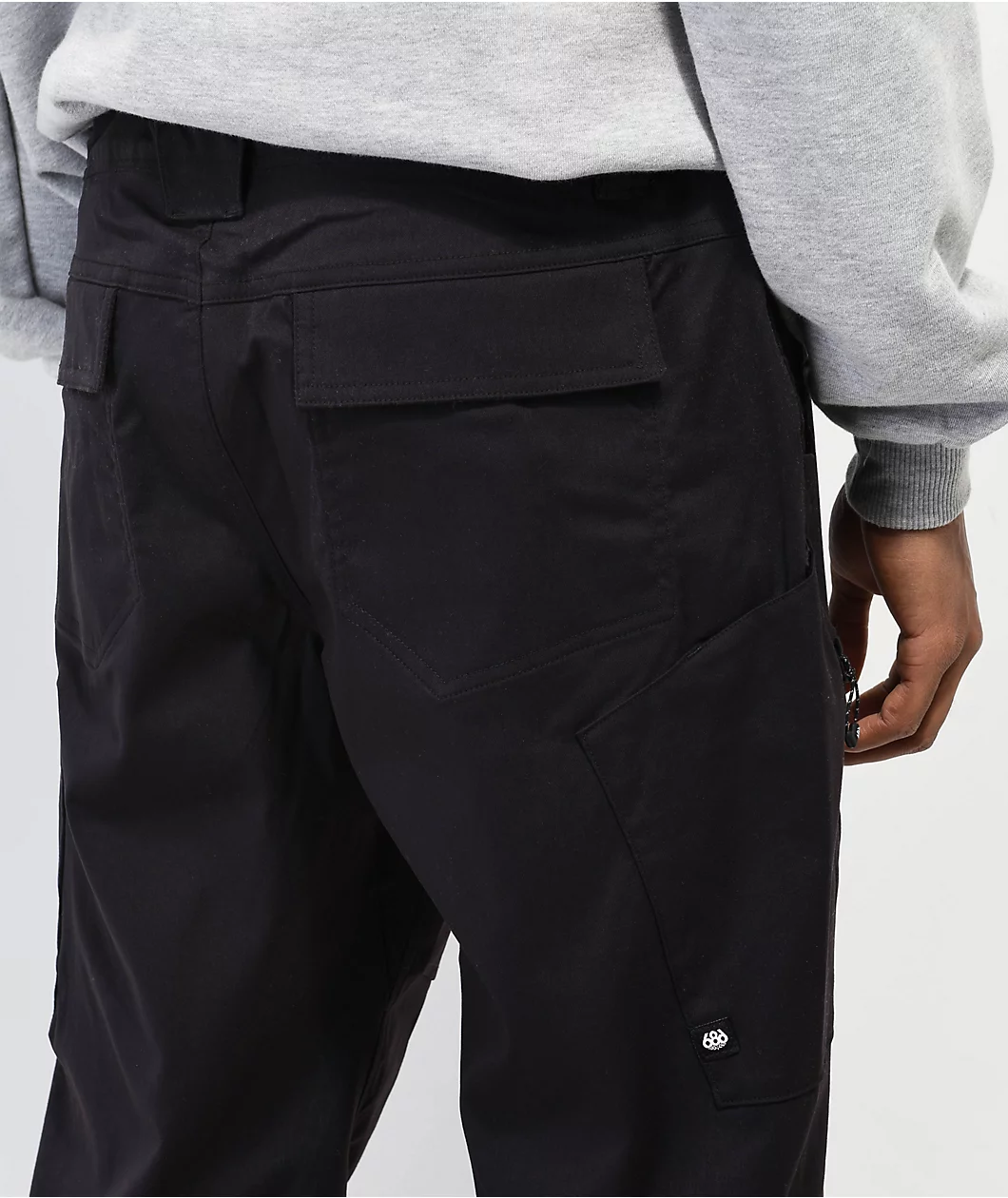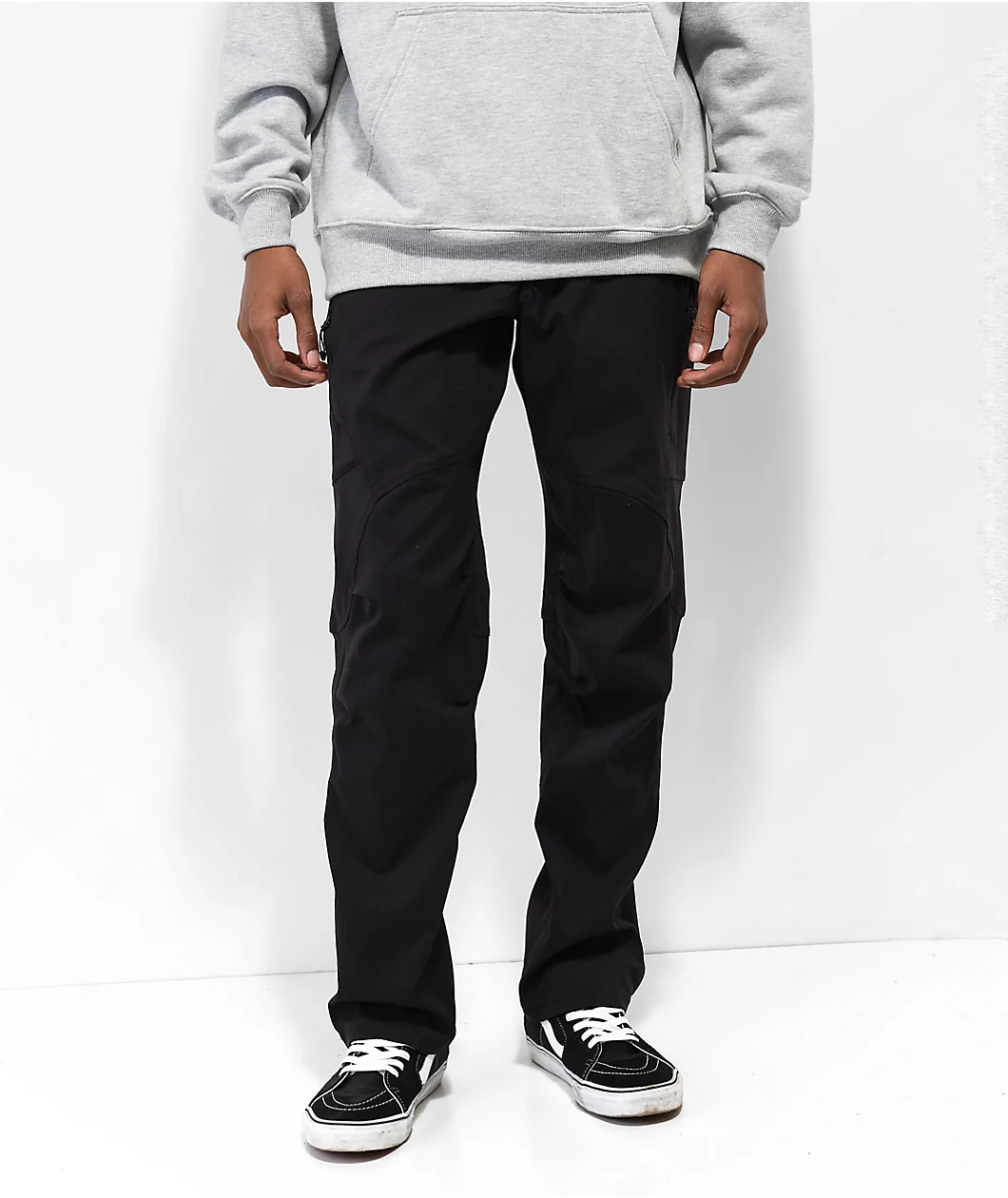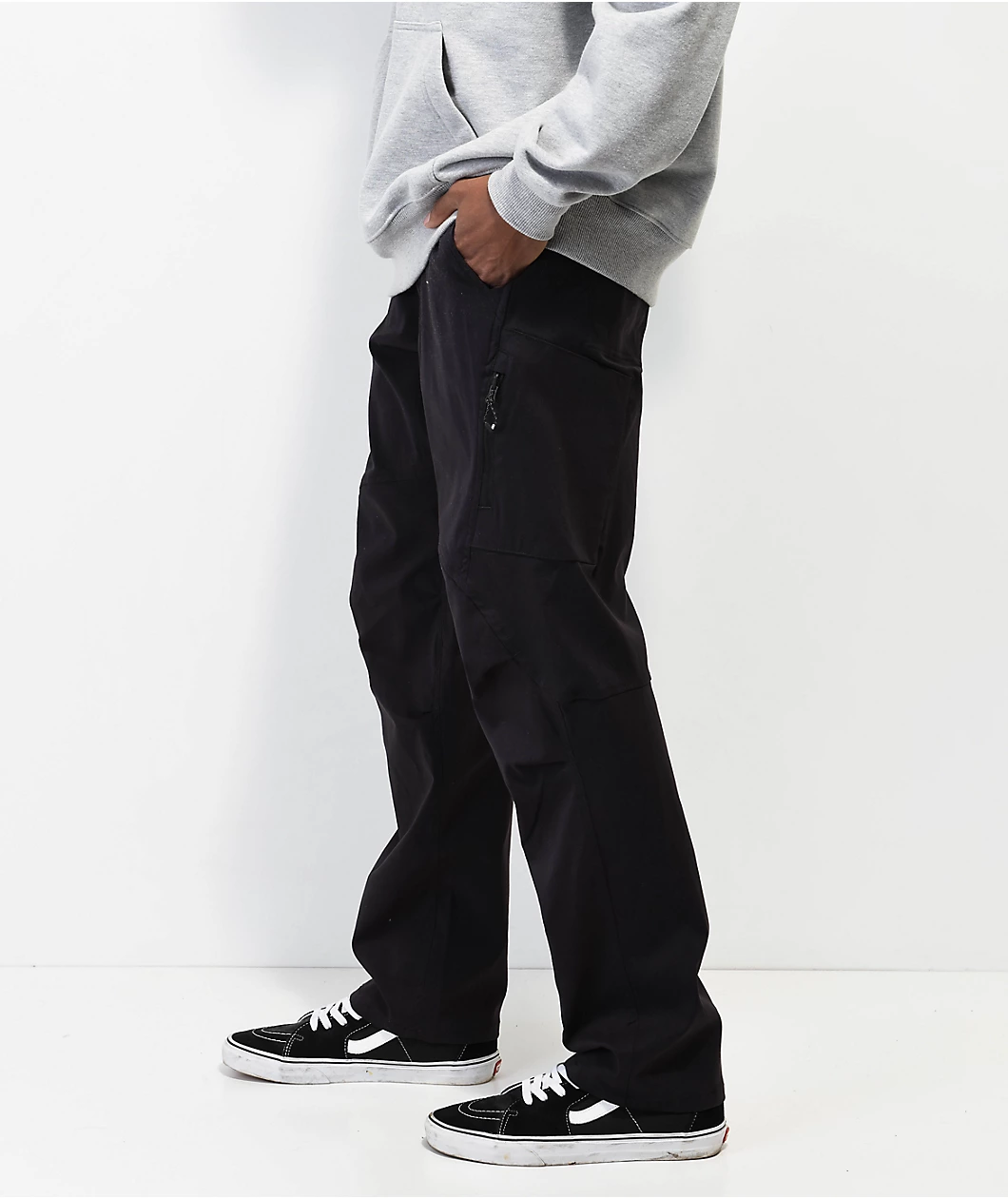 The Anything cargo pants from 686 come in a black stretch nylon construction with a DWR water-resitant finish. The relaxed silhouette features an ultra-versatile 15-pocket design while maintaining a minimalist look; perfect for hiking, climbing, travel, and everyday activities.