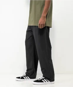 From the adidas x Maxallure collaboration, the Track Slack skate pants are made using an abrasion-resistant black canvas-nylon material. The relaxed elastic waist construction features light blue logo embroidery above the seat pockets, while pleats and creases along the waist add a vintage feel.