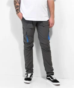 These stretch cargo pants from American Stitch come in a grey colorway, with a slim silhouette. With snap closure cargo pockets located on the thighs, dual hand pockets and a right seat pocket give the pants a modern, utilitarian look. Made from a durable nylon blend, the grey cargo pants have a comfortable drawstring adjustable waist band, while drawcords along the leg openings allow for a loose, or cinched fit.