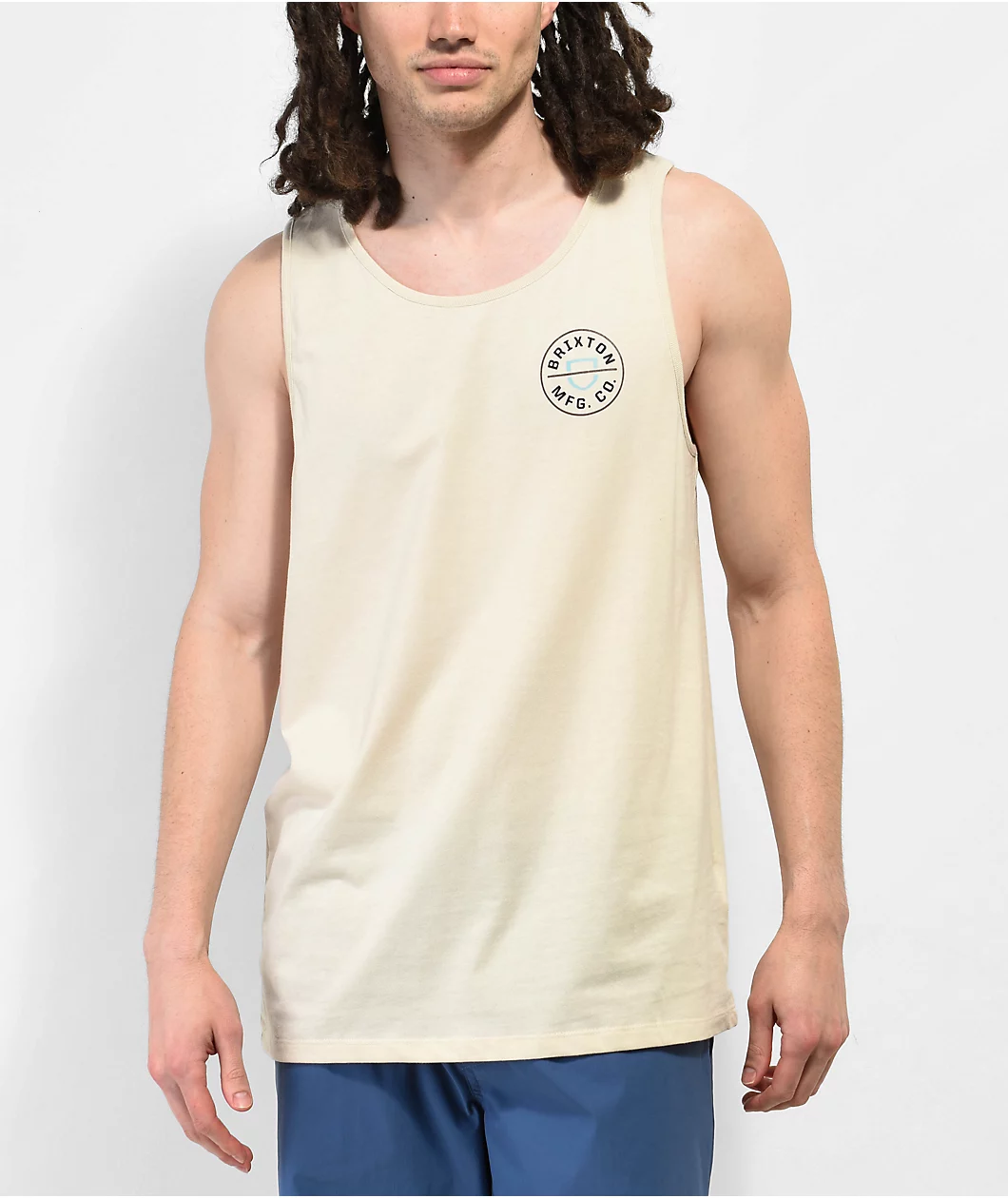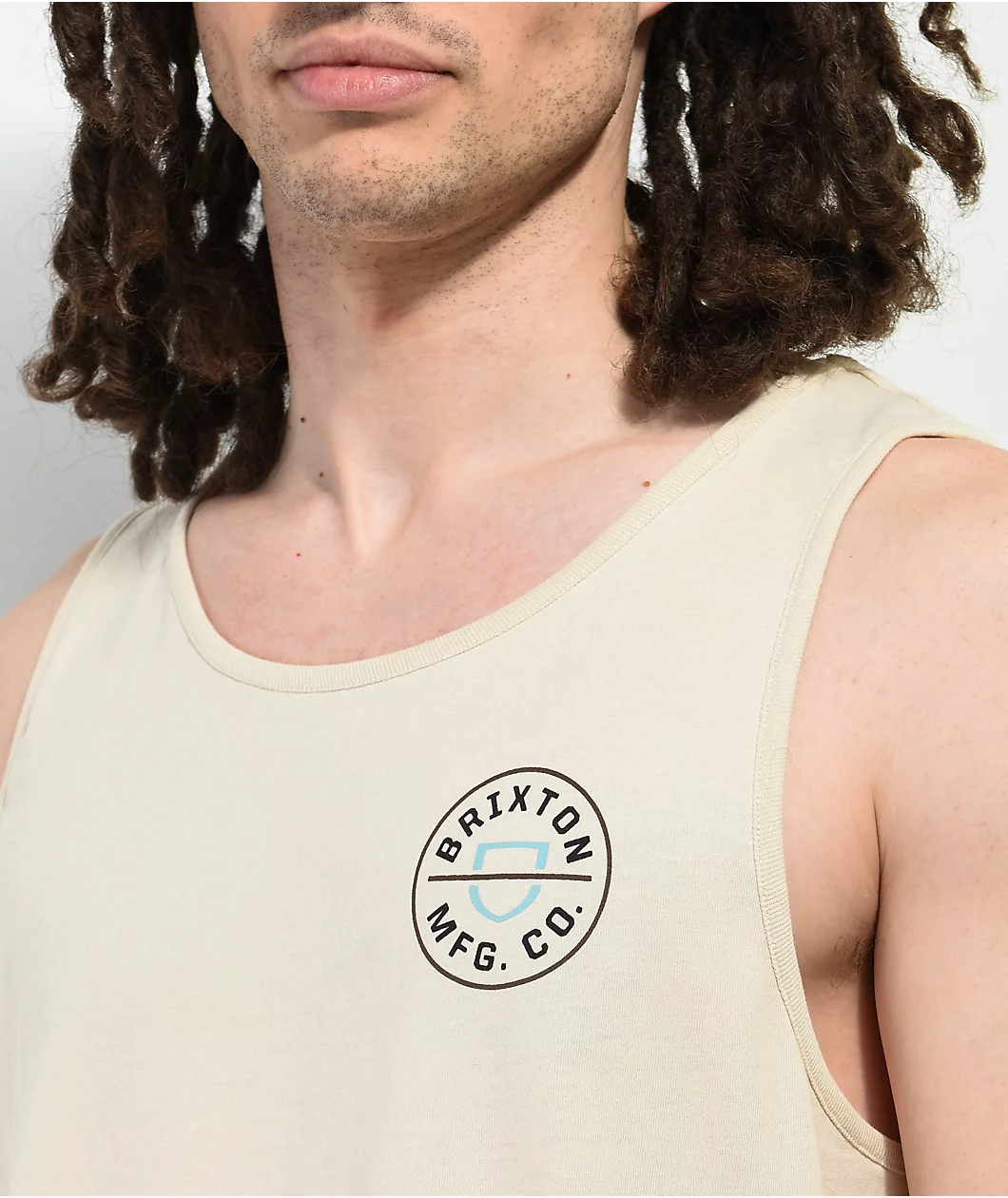 In a beige cotton construction, the Brixton Crest tank top features minimalist logo branding on the left chest and back. With light blue and beige tones offering subtle contrast, the Brixton tank top is finished with a tagless neckline for enhanced comfort.