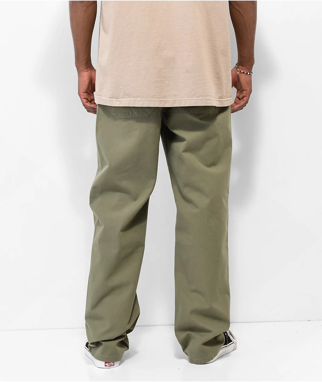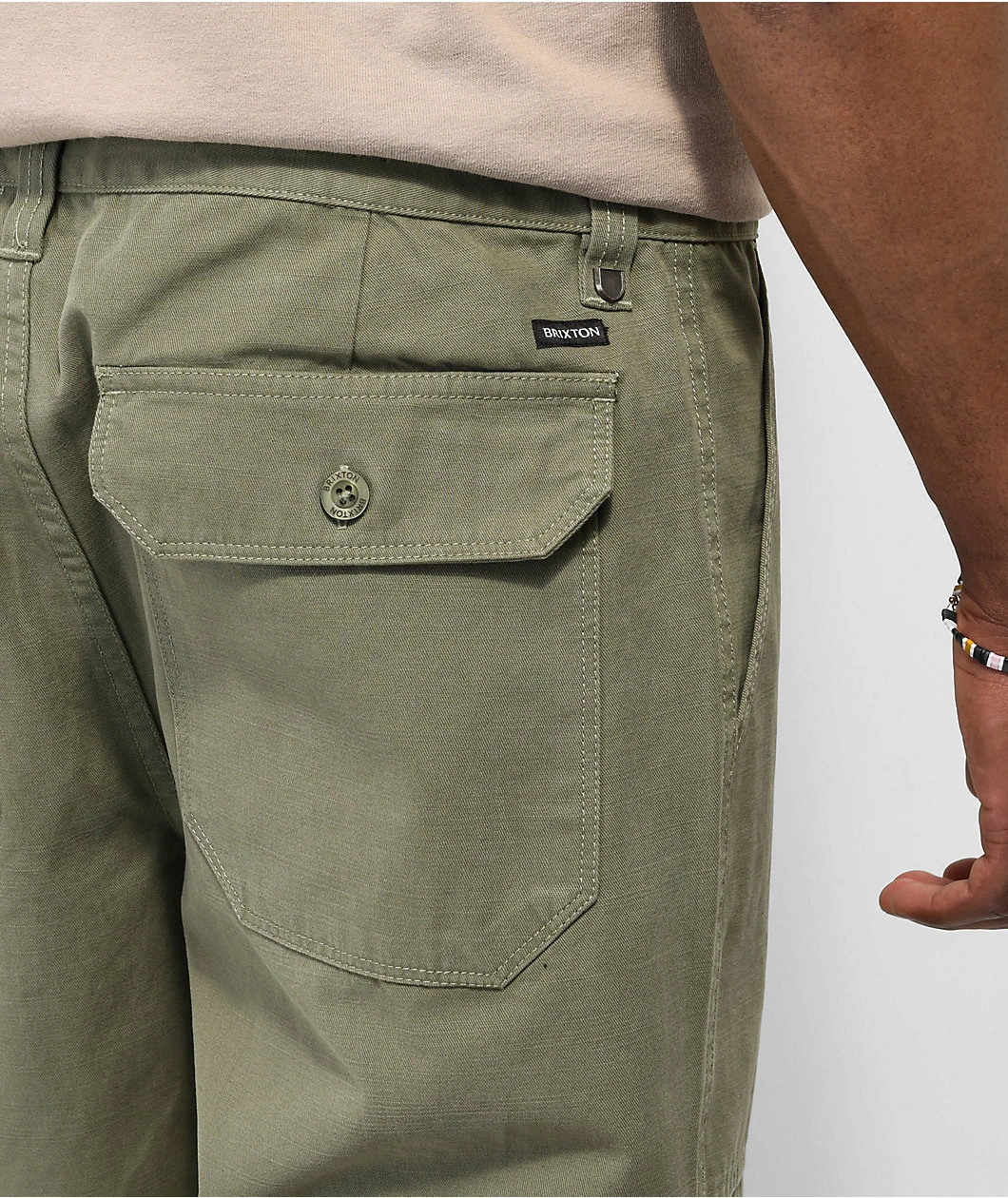 The Surplus pants from Brixton come in an olive green colorway, offering storage with dual slash hand pockets and dual seat pockets. These casual pants have a relaxed silhouette that provides a laid-back look, finished off with a button-and-fly closure for a secure fit.