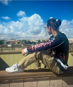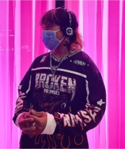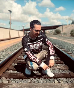Add some ferocious and sporty style into every fit with the Broken Promises Big Bark hockey jersey. This relaxed-fit jersey comes in a mostly-black colorway throughout for a classic look, while the flame graphics around the abdomen and sleeve cuffs offer some fresh detailing. A large Doberman graphic on the center chest offers some badass, puppy-loving style, and the logo script above, as well as down both sleeves, adds striking branded flair.