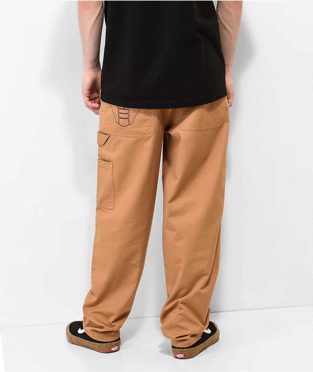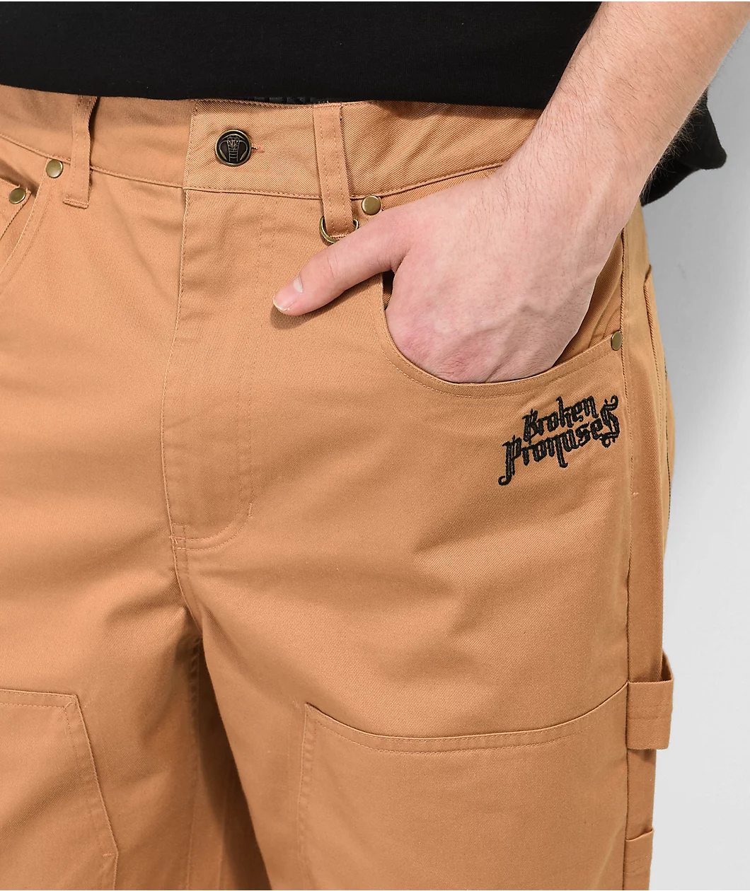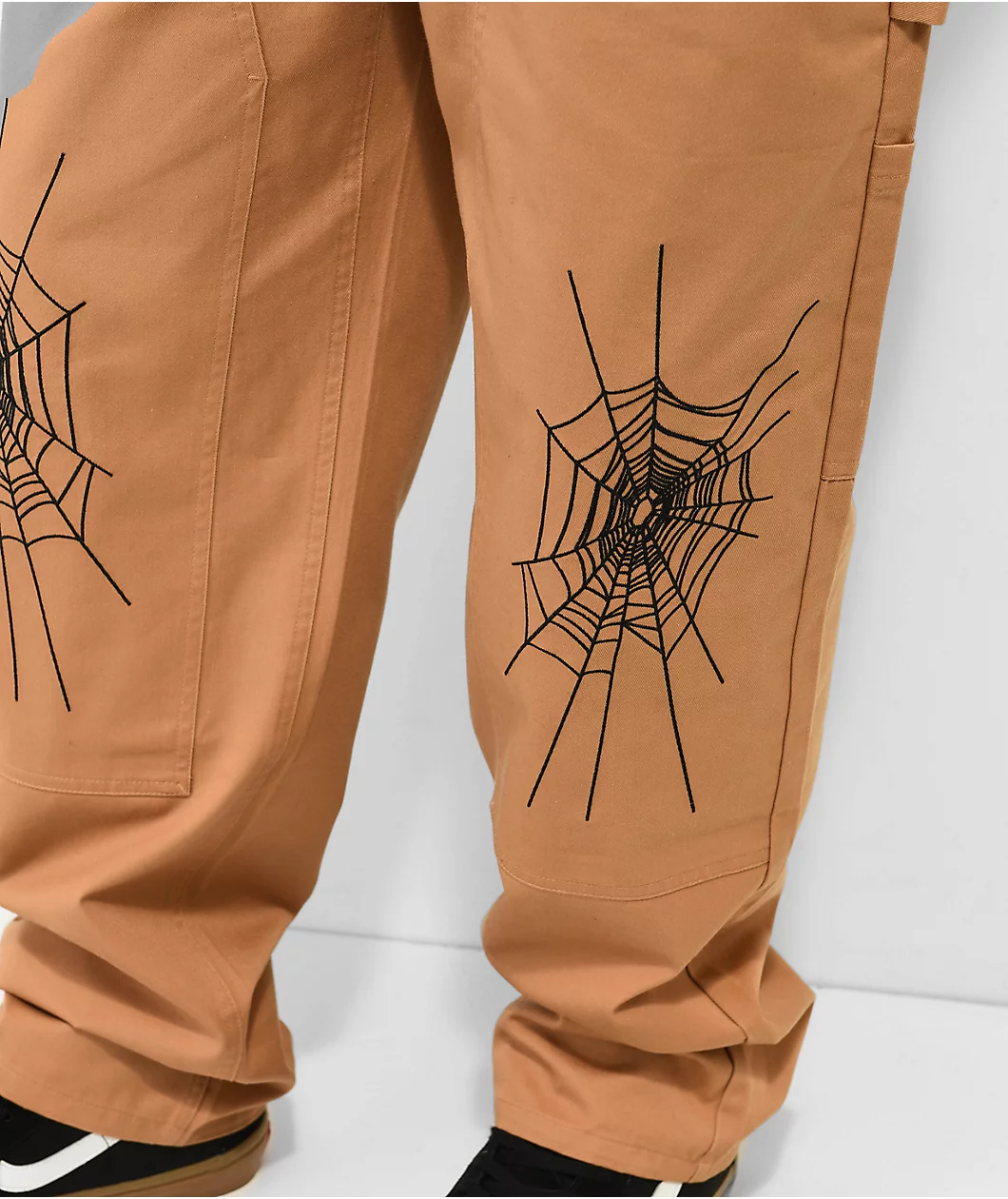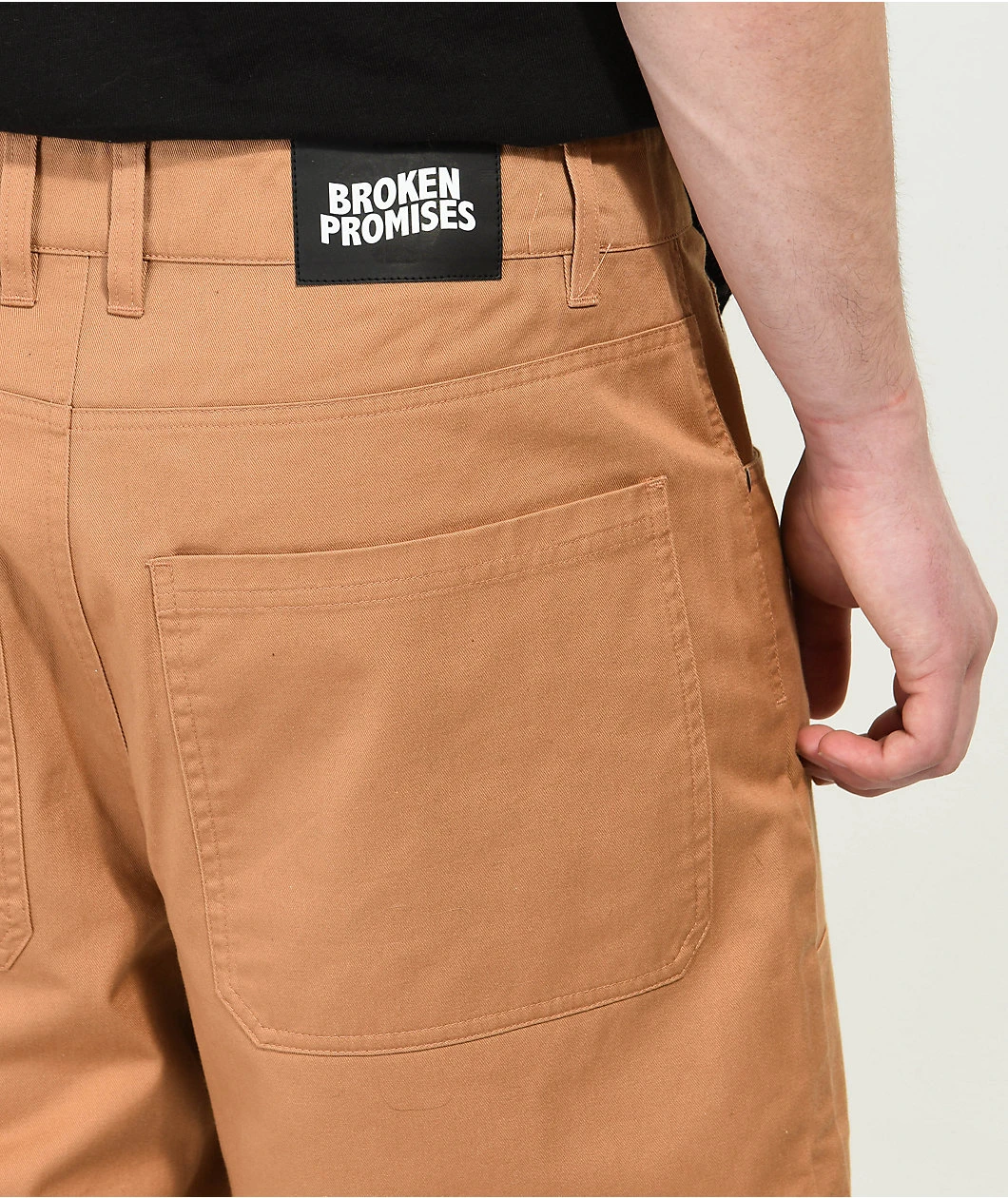 Broken Promises brings the Cobweb Embroidered skate pants in a light brown colorway, showing off black embroidery of cobwebs at the knees, the brand name at the left hip and the head of a cobra on the left seat pocket. These cool pants offer additional style with the shape of a coffin double stitched across both knees, coming complete with a durable cotton-poly blend.