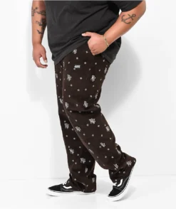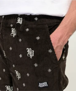 The Broken Promises Lock Up pants come in a black corduroy construction, featuring a comfortable elastic waist with an inner drawstring. The relaxed silhouette has a monogram star motif embroidered throughout, while a simple 4-pocket construction adds to the casual look and feel.