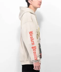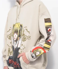 The Misa hoodie from Broken Promises x Death Note comes in a sand colorway with a screen-printed front graphic of the beautiful Misa Amane. Down both sleeves are collaboration script and graphics so you can proudly rep your favorite anime and skate brand at the same time. Made of a soft cotton-poly blend, this hoodie has a drawstring-adjustable hood and a kangaroo pouch pocket to keep your hands warm.