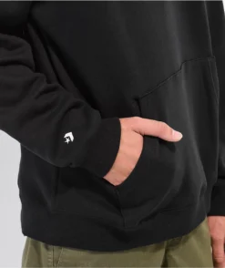 The Converse Brushed Fleece hoodie comes in a black colorway, with a silicone gel-printed CONS logo centered on the chest. Made from a heavyweight cotton blend, the Converse hoodie is finished with a ultra-soft brushed fleece interior, a drawstring adjustable hood, and a kangaroo pouch pocket with a hidden compartment for extra storage.