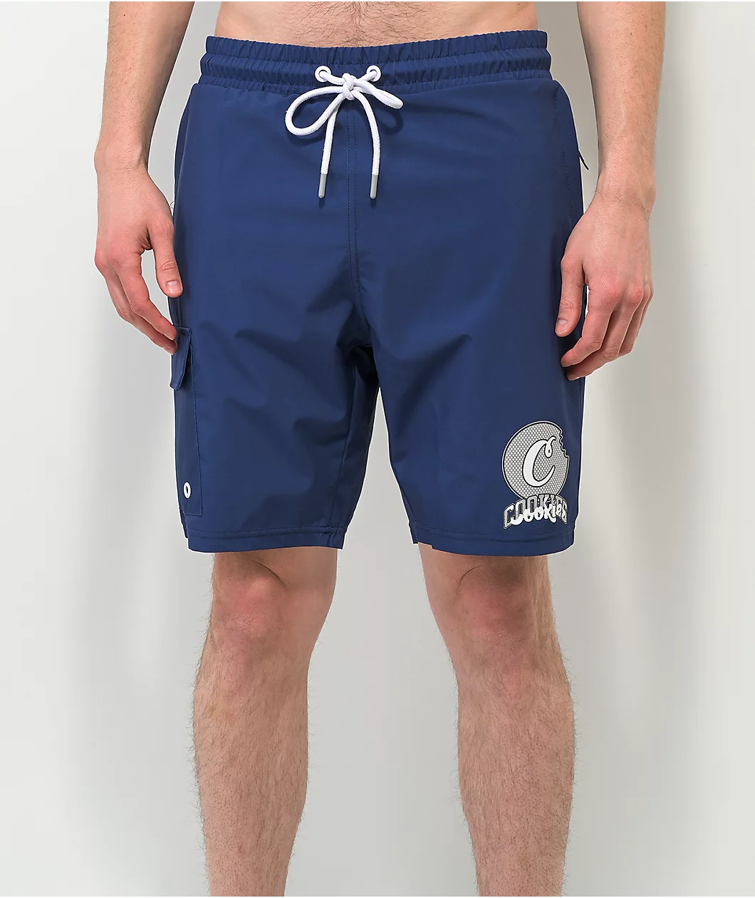The Loud Pack board shorts from Cookies are made from quick-drying polyester and have a breathable mesh-lined interior. These Cookies board shorts are featured in a navy colorway, minimally adorned with a screen-printed brand logo and script near the left leg opening. There’s a hook-and-loop cargo pocket on the right thigh and zip closure slash hand pockets with custom Cookies detailing. On top of that, they have a comfortable elastic waistband with an adjustable drawstring with custom grey aglets.