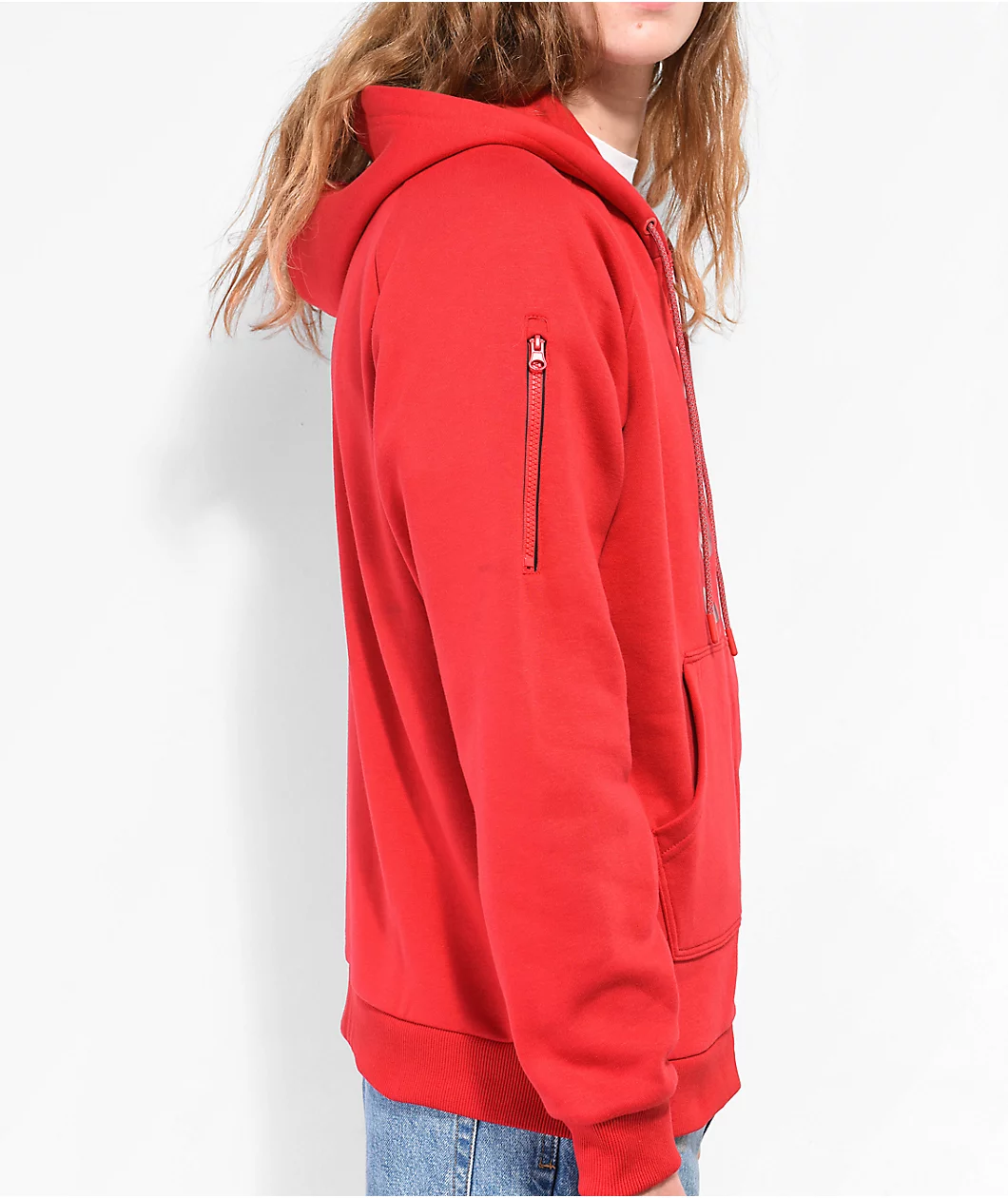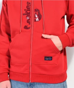 In a vibrant red colorway comes the Searchlight hoodie from Cookies, showing off the brand name in a thick rubber material for style. This hooded sweatshirt makes layering with other pieces easy thanks to a full zip closure, offering storage with dual slash hand pockets and a snug fit with an adjustable drawstring hood.