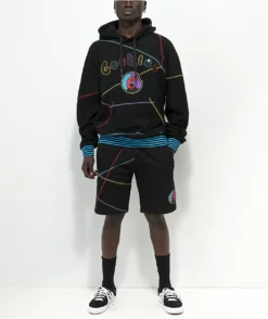 The Show N Prove black sweat shorts from Cookies come in a black colorway with a black and blue stripped waistband, an embroided brand patch on the left leg, and colorful stitching throughout the right leg. These shorts also feature a ribbed, elastic waistband for an adjustable, relaxed fit that provides unrestricted movement throughout the day.