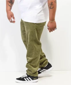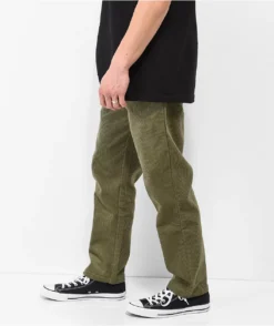 These khaki green chef pants from Cookman are made of a 100% cotton corduroy construction with a drawstring-adjustable elastic waistband and four pocket construction to keep any tools on hand. These pants come in a relaxed fit with slightly tapered legs and a small brand tag adorning the back right pocket in a bright red for contrast.