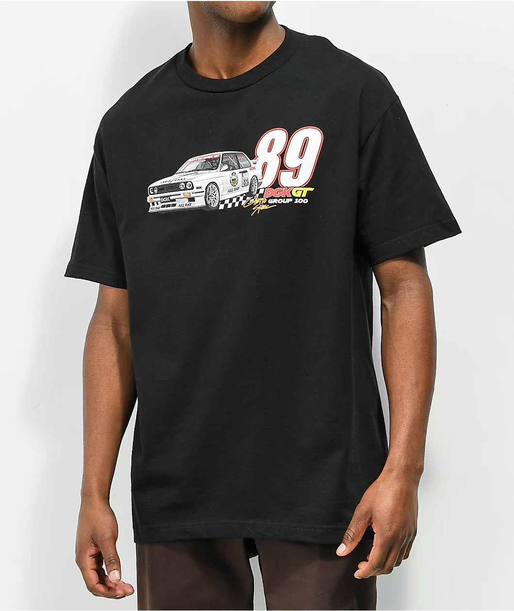You don’t need to be a patron of the speedway to rock this DGK GT89 black t-shirt! This tee’s short-sleeve silhouette and soft cotton construction will keep you cool and comfy, while the screen-printed GT89 graphic with script that reads “89 | DGK GT | Ghetto spec | Group 100” on the chest and back keeps the shirt as evocative as ever.