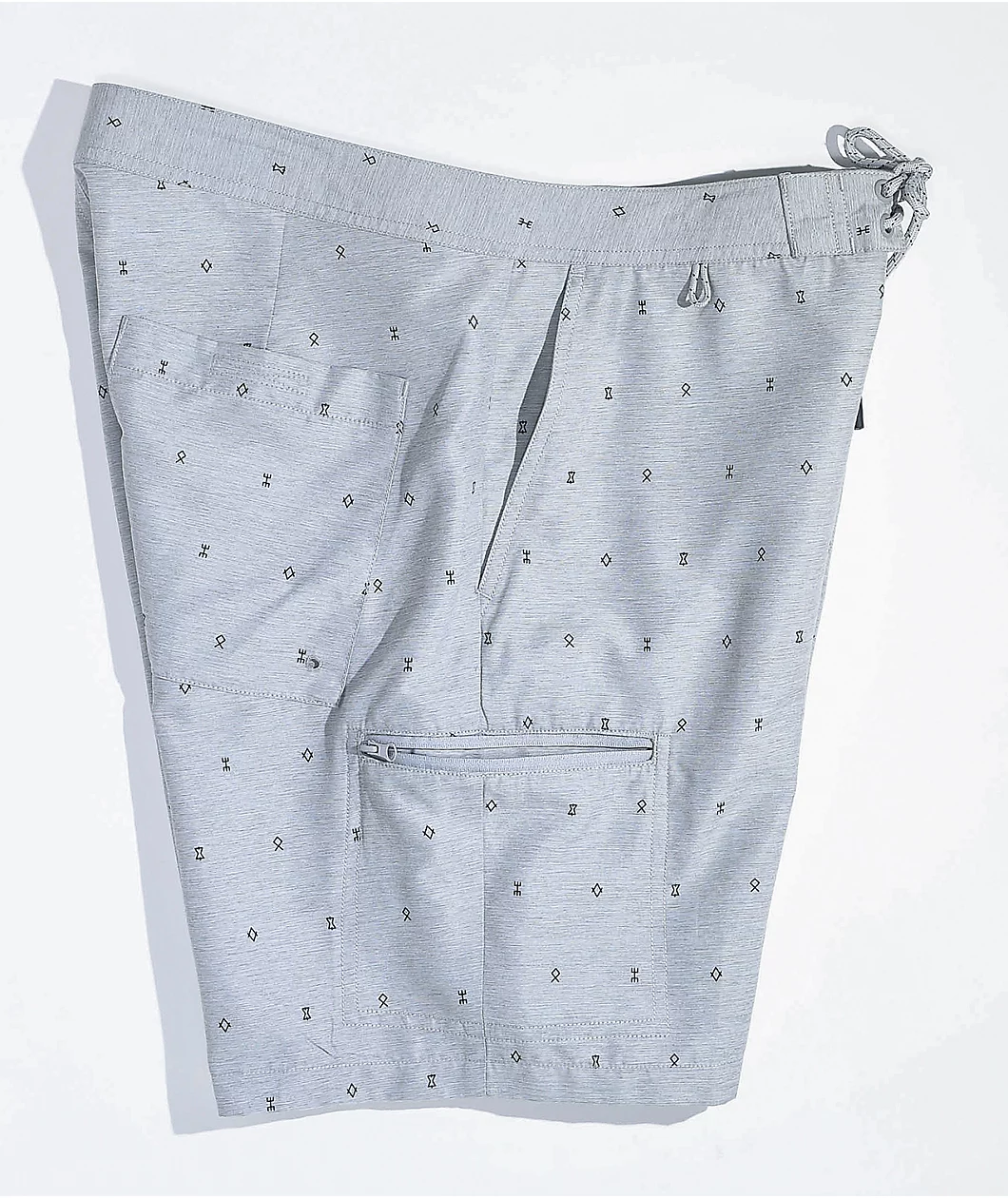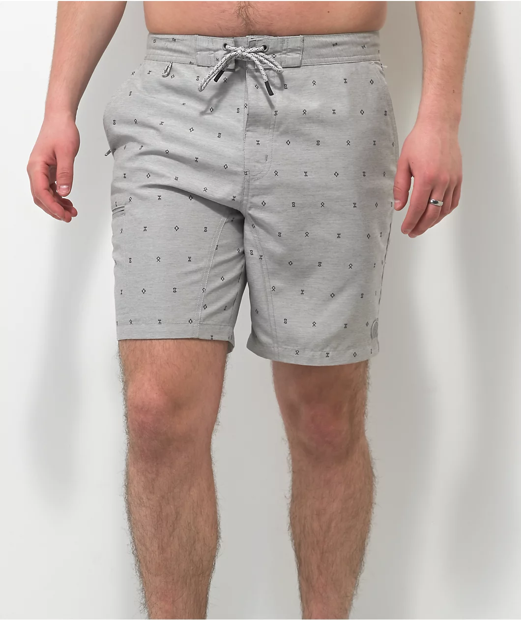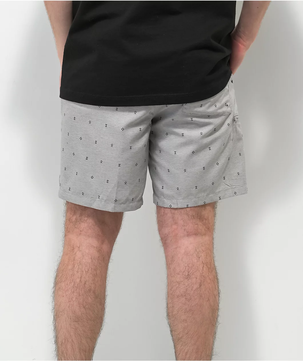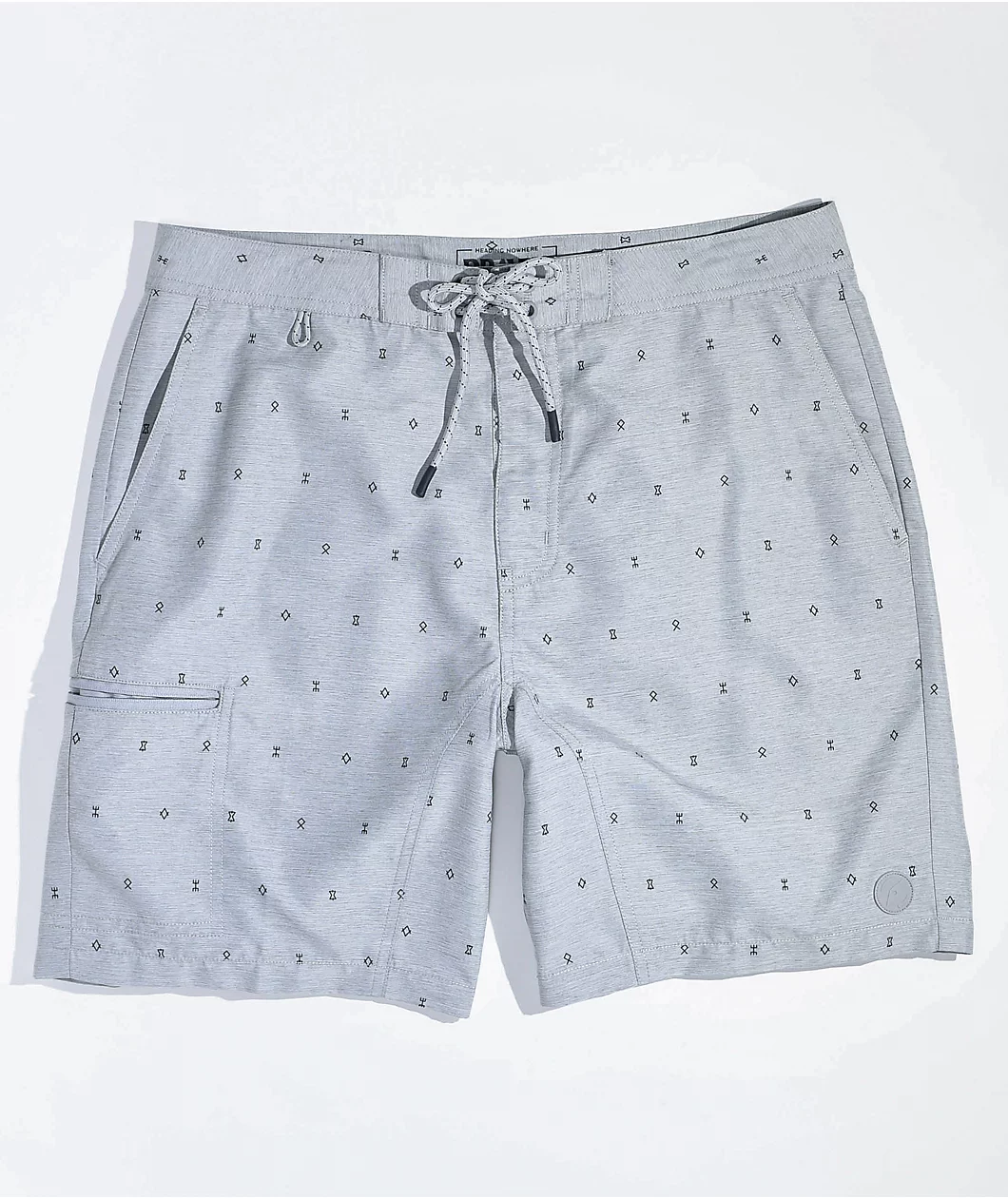 The Goff Dravus hybrid shorts are designed to be seamlessly worn as board shorts or as casual, everyday shorts. These Dravus shorts have a grey colorway with tiny, geometric all-over print. They are made from 100% polyester, which means these shorts are lightweight, breathable, and best of all, quick-drying. They have two slash hand pockets and a pocket on the right thigh that are both secured by a zipper and lined with mesh, and the waistband has a comfortable, customizable tie-closure.