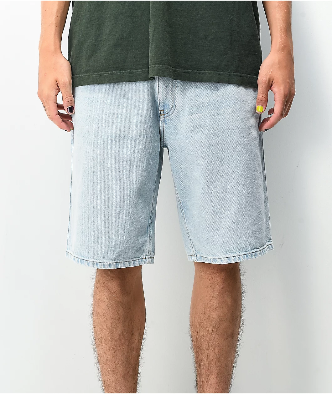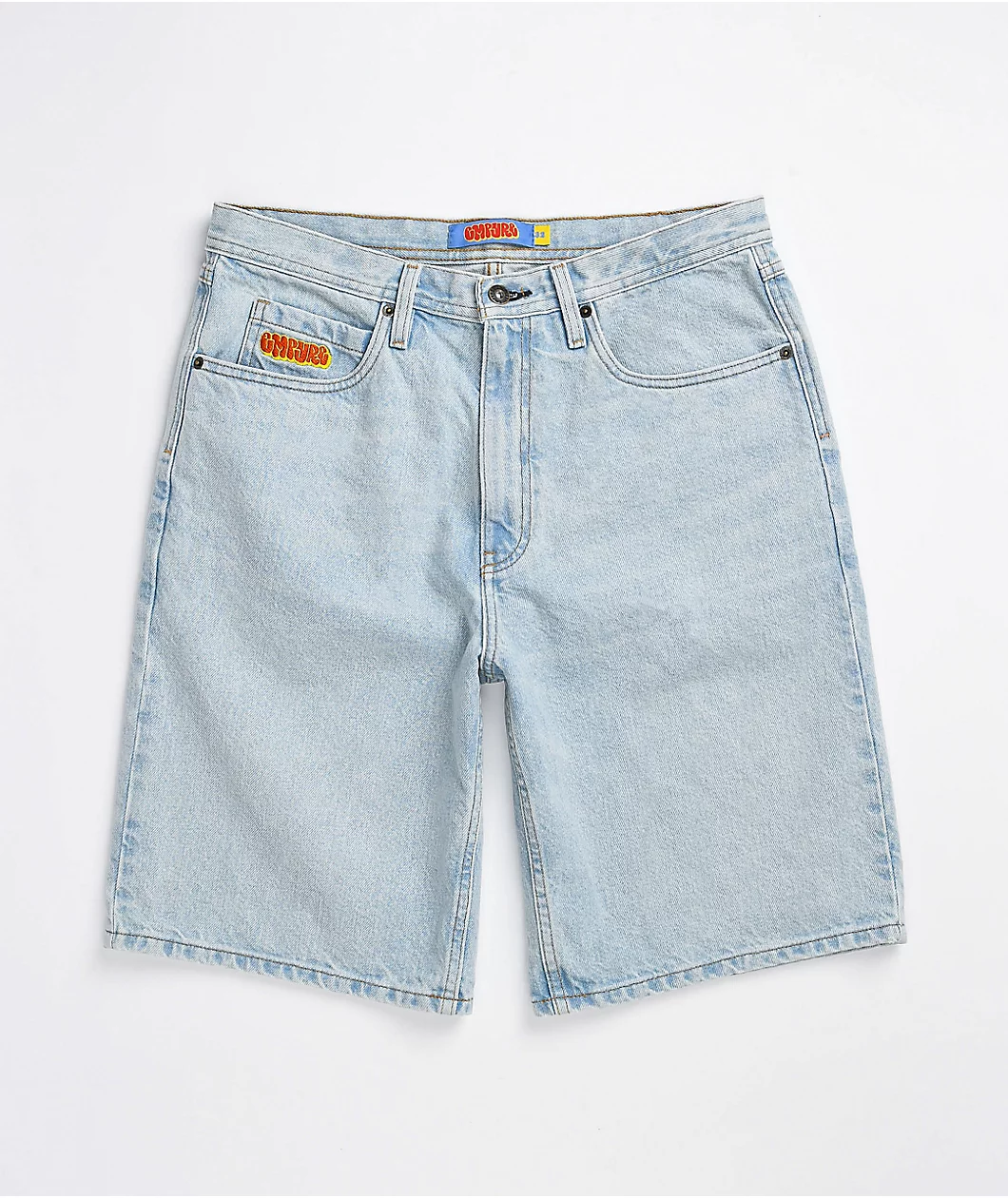 Keep it comfy with the Colby loose fit denim skate shorts from Empyre! These light-wash jean shorts feature a comfortable loose fit, while the stylish Empyre graffiti-style script at the watch pocket lends a splash of color to any wardrobe.