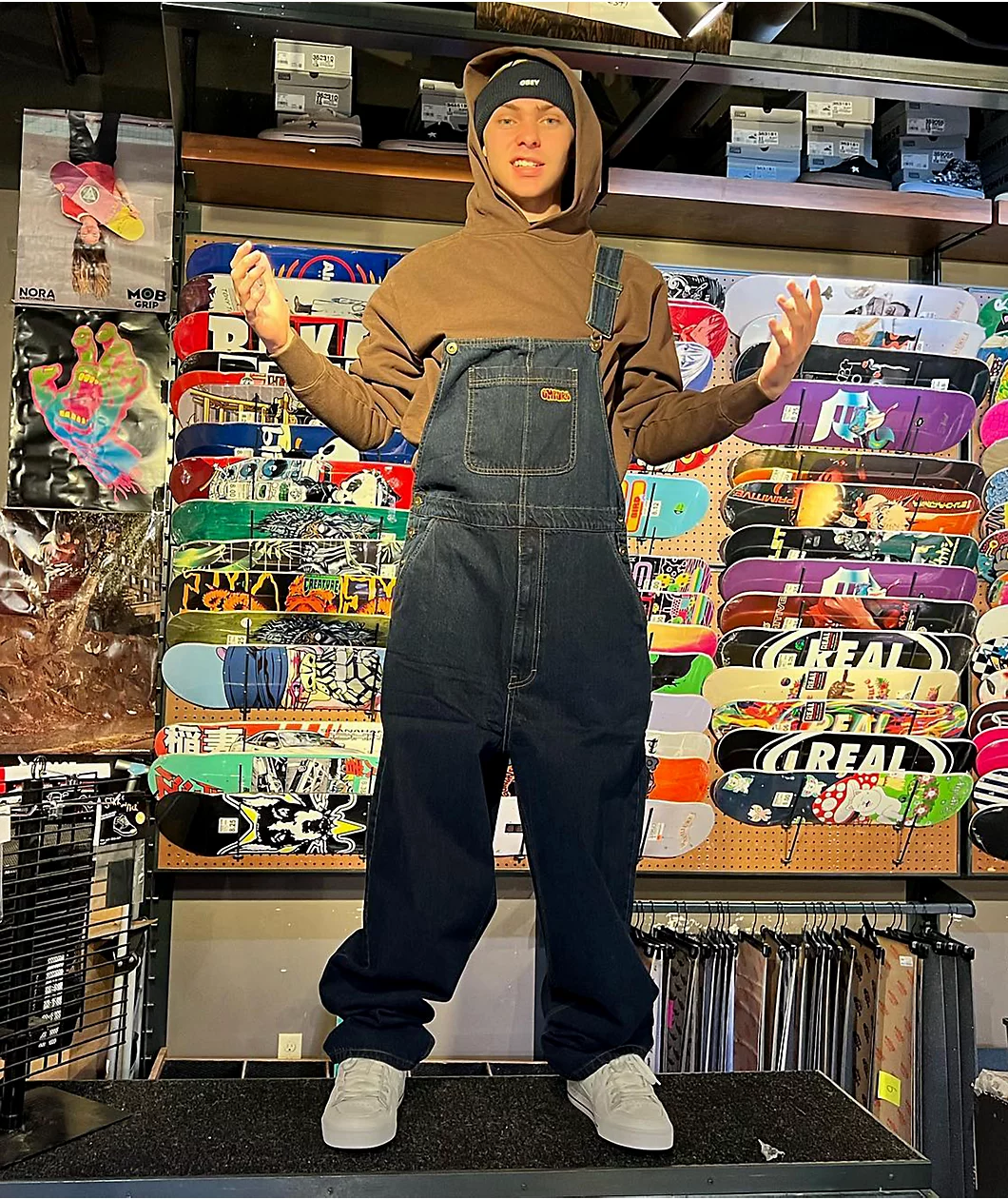 Add a relaxed vibe to your wardrobe with these loose fit evening skate denim overalls from Empyre, coming in a dark blue colorway. Embroidered on the chest pocket is the recognizable Empyre brand name in accents of red and yellow that draw the eye, also found in a tag on the right seat pocket. Not only are these overalls made from a durable cotton material, they provide ample storage with dual chest pockets and a classic 5 pocket construction, coming complete with adjustable shoulder straps for a custom fit every time.
