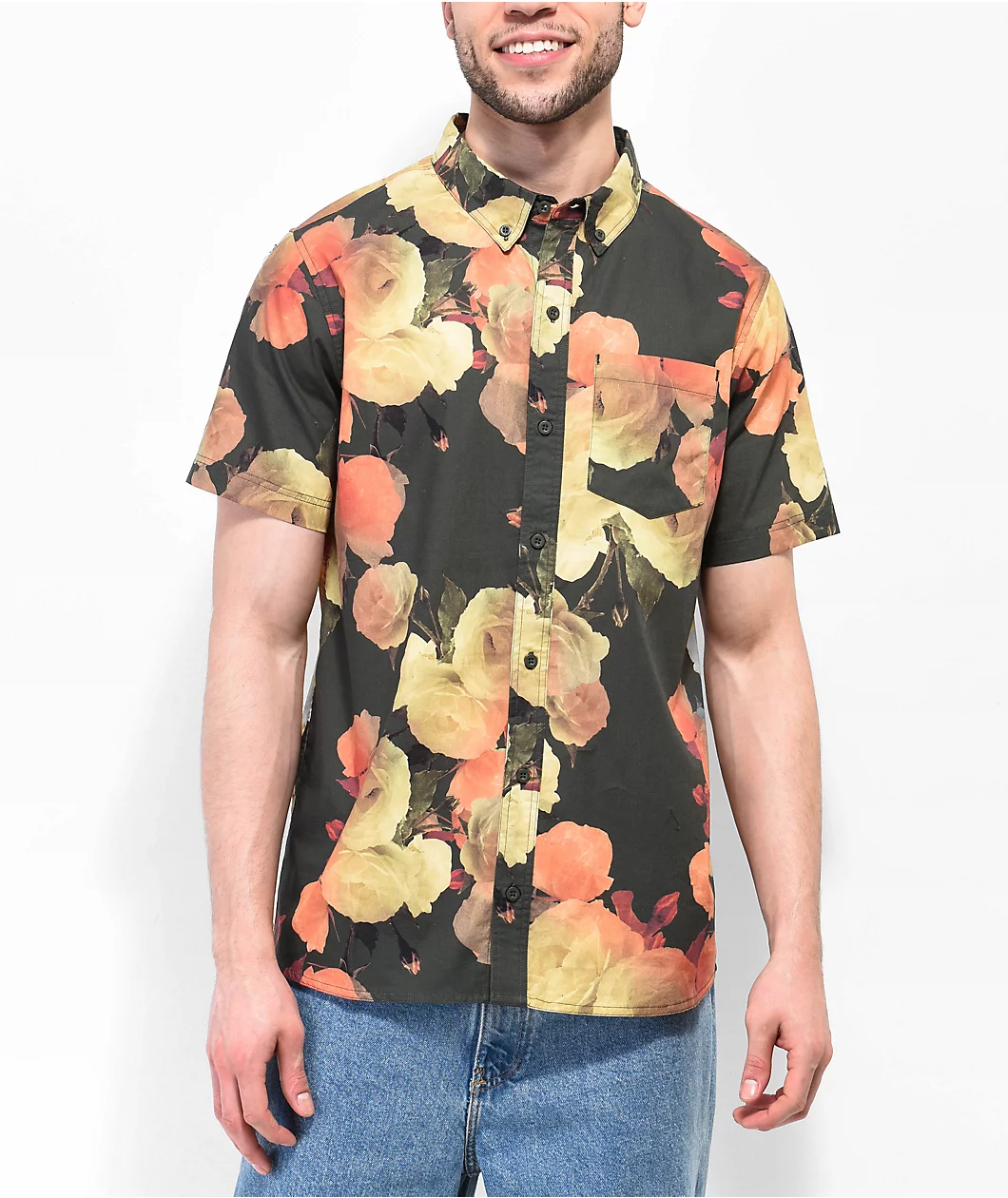 From Empyre comes the Otto Blown short sleeve shirt, with oversize floral graphics injecting grey, beige and pink tones throughout. Made from breathable 100% cotton, the woven button up shirt has a traditional button down collar and a single chest pocket.