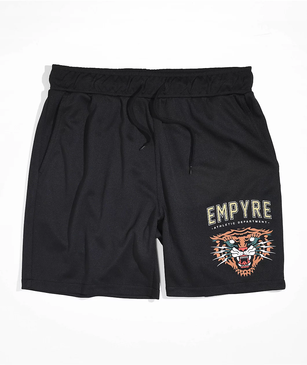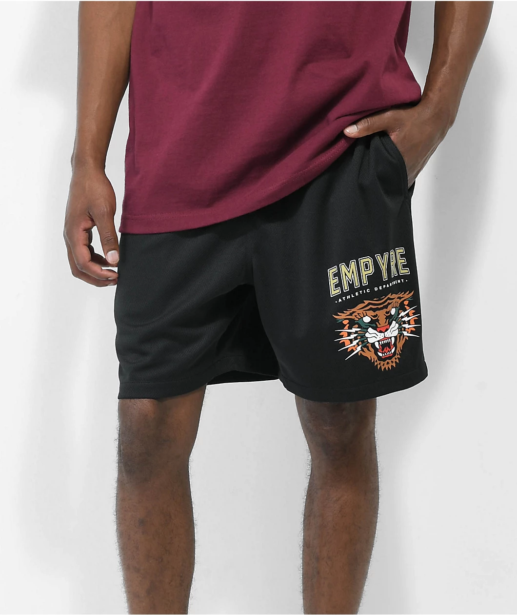 Empyre introduces the Ready Mesh shorts in a black colorway, featuring a screen-printed graphic of a colorful, tattoo style tiger on the left leg, just below the brand name in Highschool style lettering. With an elastic waistband & adjustable drawstring, these shorts are perfect for whatever activity you have planned for the day. With a 100% polyester construction these shorts are as easy to care for as they are to wear.