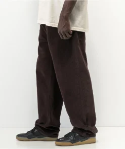 Stay comfy and cozy with the Skate java corduroy pants from Empyre. These vintage-style, deep brown cords feature a stretchy, straight leg construction for a loose, forgiving fit that won’t hinder movement. A bright Empyre tag appears at the watch pocket, adding some unique, colorful branding to these loose jeans.