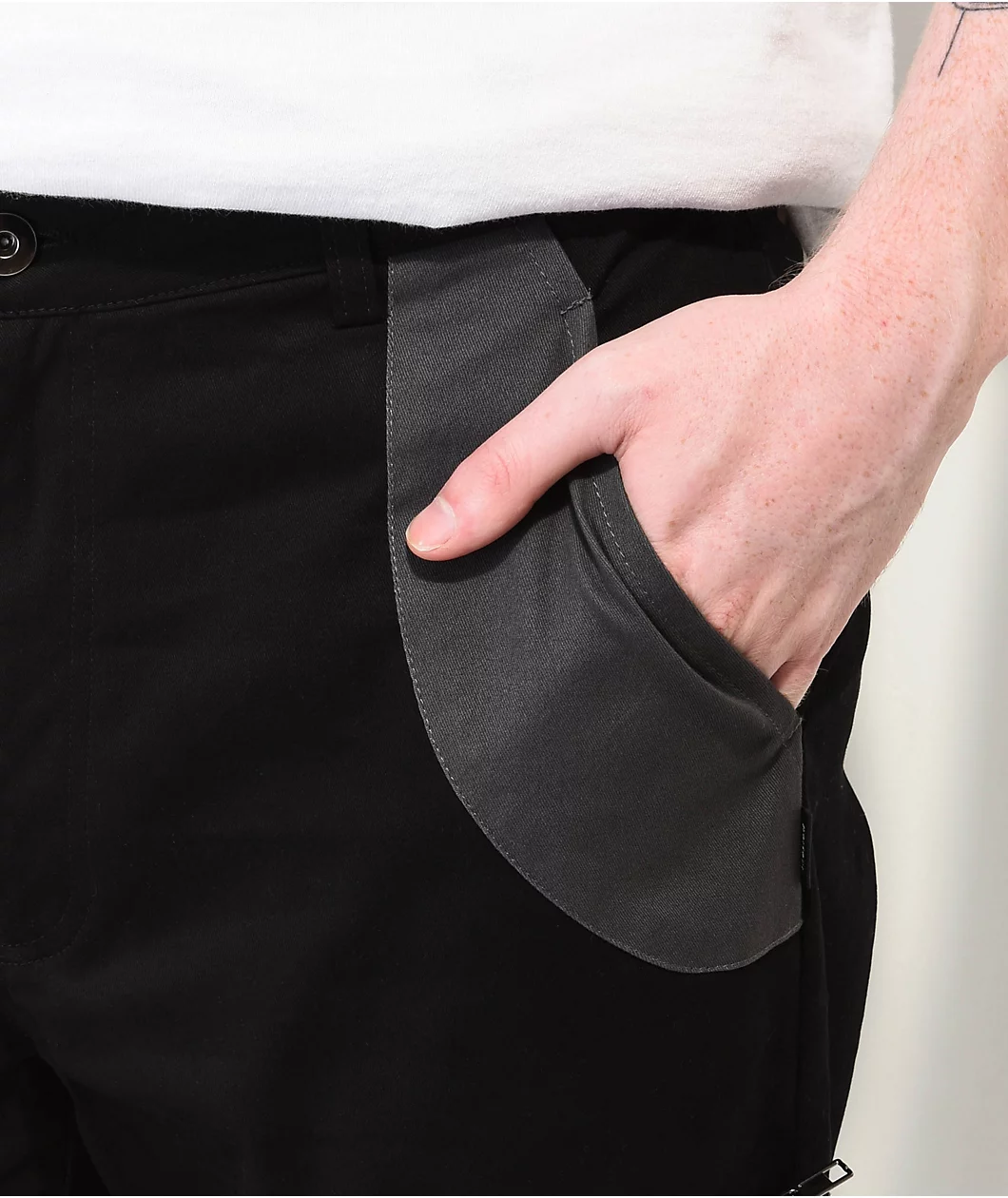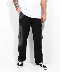 From EPTM comes the Publisher cargo pants in a black colorway. These pants feature a four pocket configuration with added zippered cargo pockets on either side; adding even more storage space with additional button closure pockets on top. These pants are constructed of a cotton-poly blend that is both comfortable and durable.
