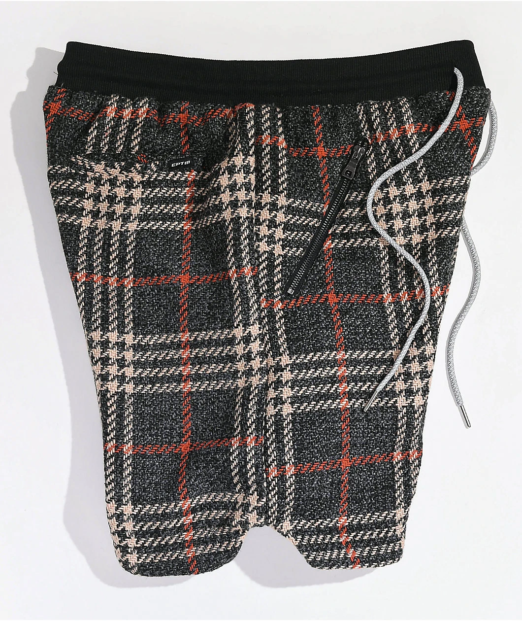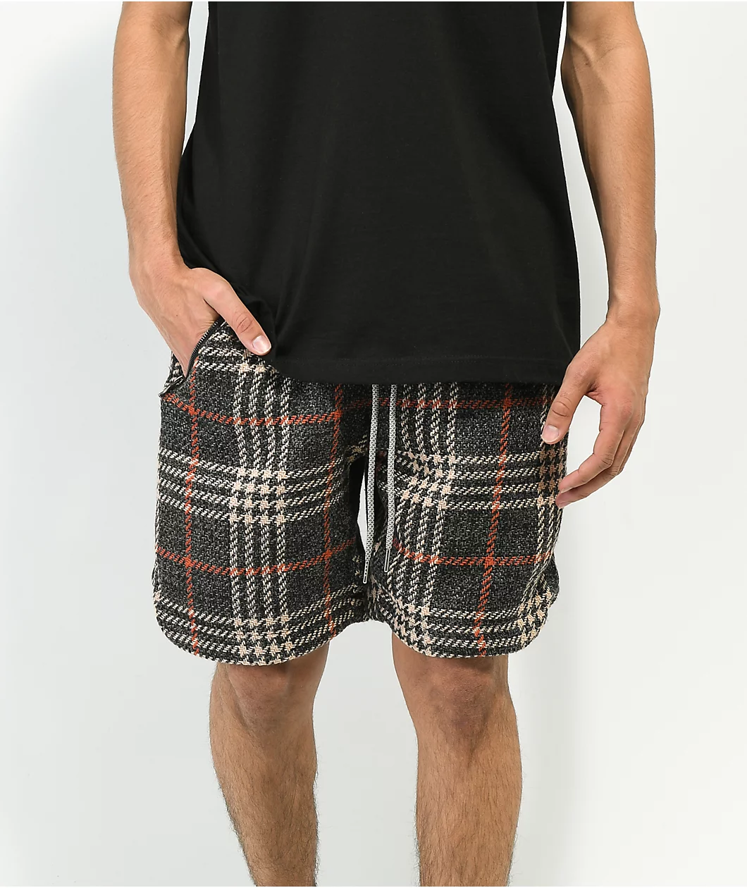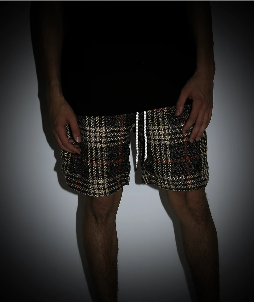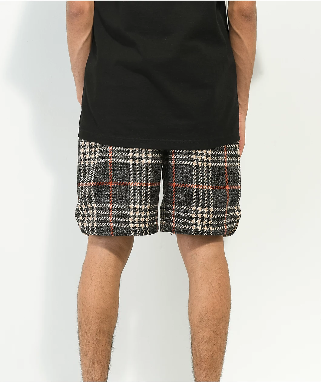 From EPTM comes the Tweed Trucker shorts in grey with red and beige plaid patterning throughout. These shorts feature a drawstring-adjustable waistband and a three pocket construction with zip closure on the front. Made of 100% polyester, these shorts come in a relaxed fit for comfortable, all day wear.