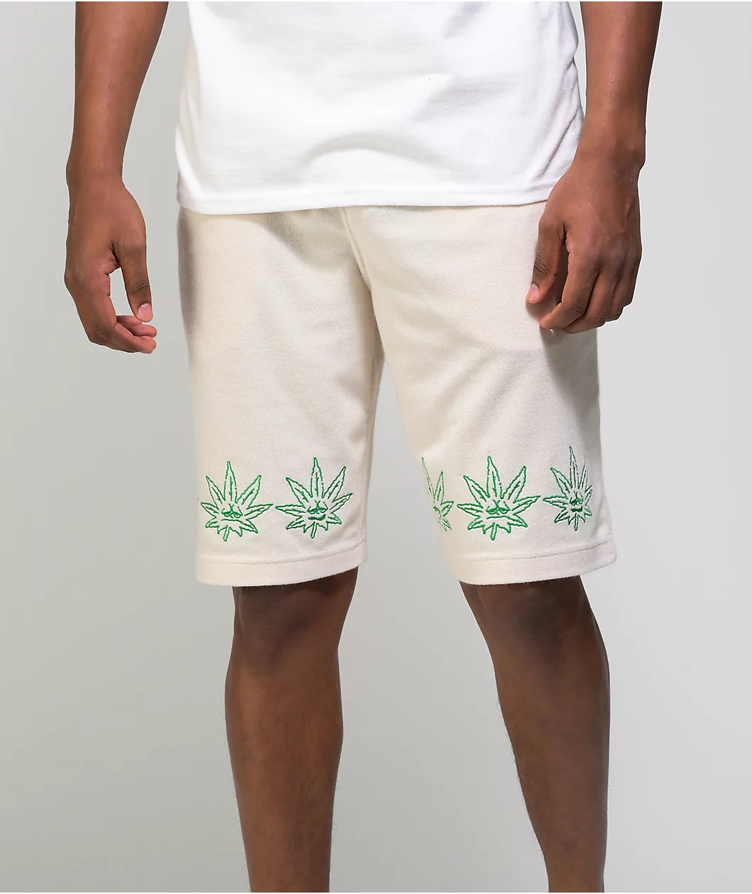 Give your upper-leg ensembles a glow-up with the Green Buddy cream sweat shorts from HUF. Off-white in color, these shorts come with a soft terry cloth lining, with a drawstring-adjustable waist and relaxed silhouette keeping things cozy and casual. Embroidered Green Buddy insignias decorate the short’s legs, lending some agriculturally-themed steez to the shorts, so you can keep yourself feeling comfortably and looking cool even when you’re couch-locked.
