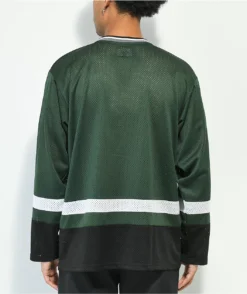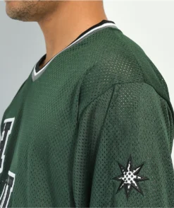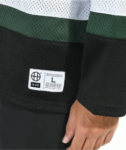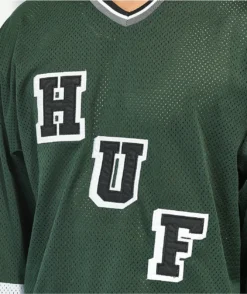 Add some ice-cold drip to your duds with HUF’s Star green and white hockey jersey! The lightweight, mesh-style construction keeps the shirt comfortable, while the hockey jersey silhouette adds a sporty touch to the mix. Embroidered, collegiate-style lettered patches reading “HUF” descend diagonally down the front of the shirt, with a pair of matching stars situated on either sleeve, ready to add an athletic element to any ‘fit you throw together.