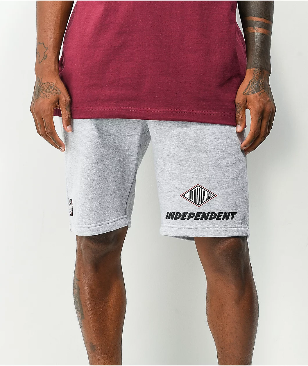 Hoist your bottoms high and get ready to stunt with the Built To Grind grey sweat shorts from Independent. These hustle-oozing shorts have a grey colorway, and feature a “Built To Grind” branding insignia and a Independent logo screen-printed at the left leg, while the soft fleece-lined interior keeps you comfortable while putting that work in.