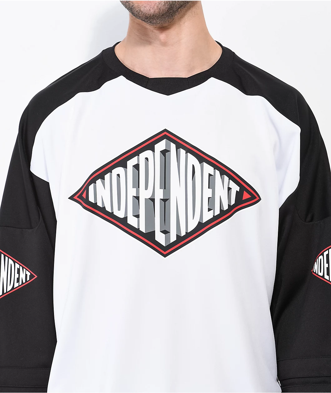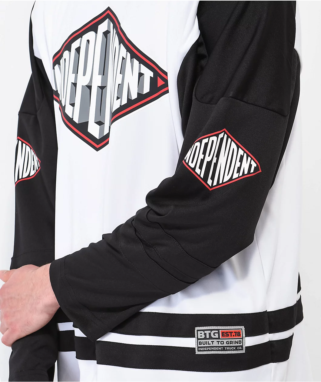 In a black and white colorway comes the Depth Summit hockey jersey from Independent, showing off the brand name across the chest and down both sleeves. This jersey is made from a durable polyester material, coming complete with a black striping at the bottom hem for a classic hockey style.