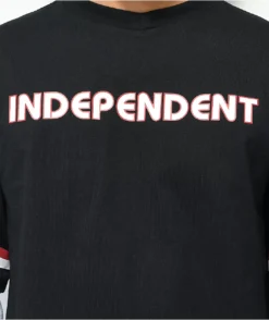 The Range Independent layered jersey t-shirt comes in a black colorway with screen-printed logo graphics on the front and back and a long sleeve connected at the sleeve in a heather grey. This shirt features a layered construction made of 100% cotton and has a classic crew neckline as well as ribbed hems throughout.