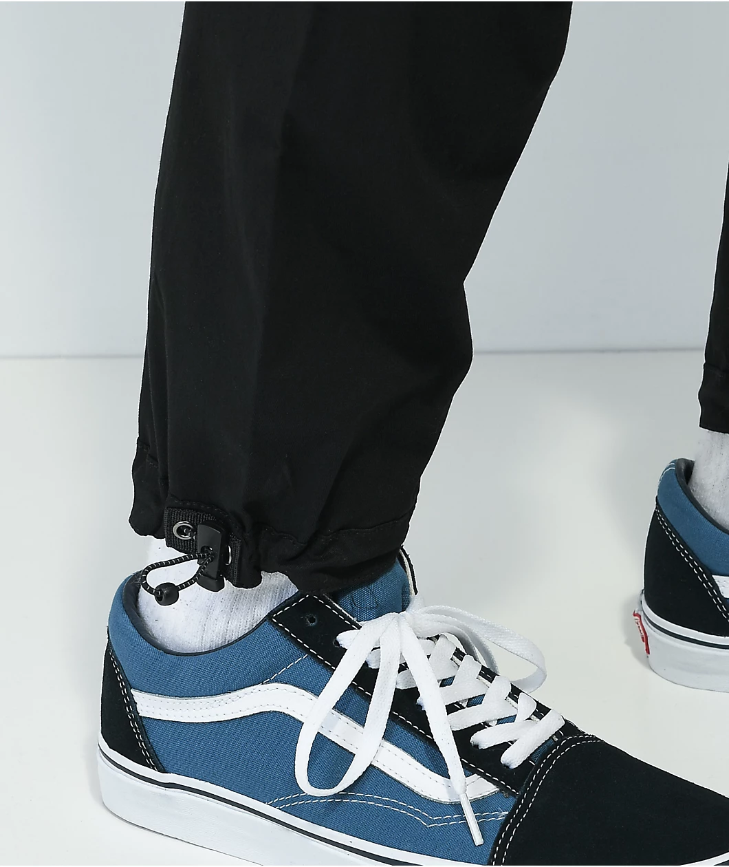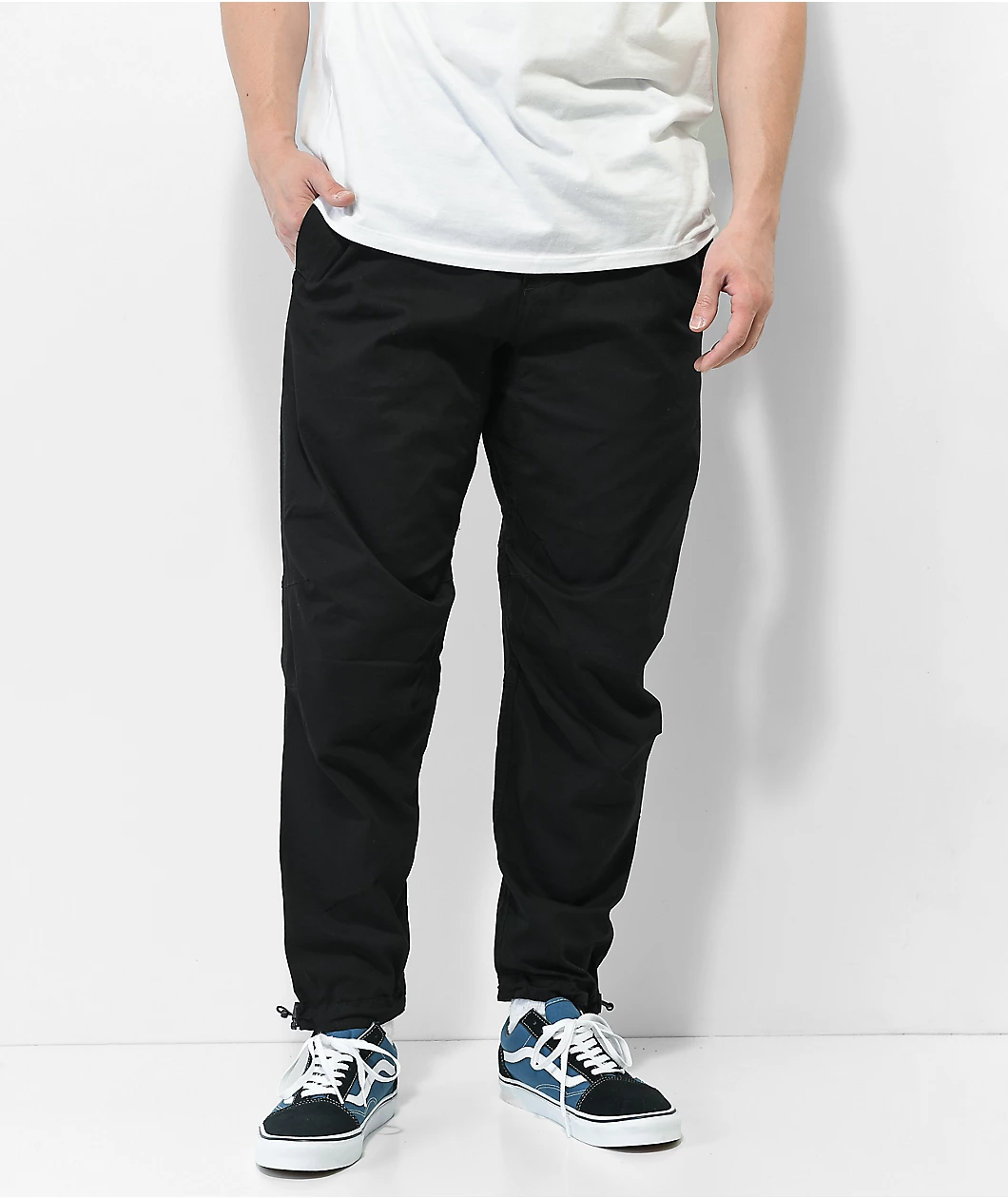 The Weekend III Kennedy pants come in a black colorway with natural accents such as the adjustable drawstring, featured with the elastic waistband, and the brand tag on the back, right pocket. These pants feature a comfortable, 100% cotton construction with a 4-pocket configuration and draw cords on the ankle cuffs for a look that is stylish and customizable.