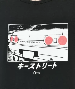 From Key Street comes the Dreamin tank top in a black colorway. The JDM-inspired tank top features a screen-printed manga-style graphic of a 90’s racing car with red tail lights, with katakana lettering below reading “Key Street.” The loose fitting tank top comes in a breathable lightweight cotton construction, and is finished with ribbed accents along the neck and arm openings for comfort, and subtle Key Street branding on the back.