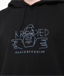 From Krooked comes the Arketype Raw hoodie in a black colorway, with a stylish loose fit. A graphic of a face with Krooked branding designed by Mark Gonzales is embroidered across the chest, as the skate hoodie is complete with a brushed interior, a kangaroo pouch pocket, a drawstring adjustable hood, and ribbed accents along the sleeve cuffs and bottom hem.