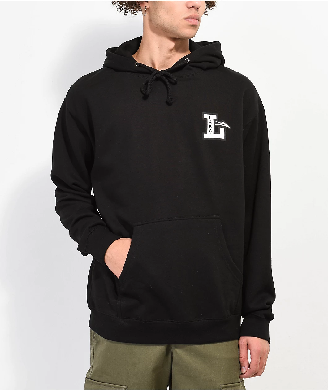 In a sleek black colorway comes the Letterman hoodie from Lakai, showing off branding left of chest in white for contrast. This hooded sweatshirt offers an adjustable drawstring hood, coming complete with a kangaroo pouch pocket for storage.