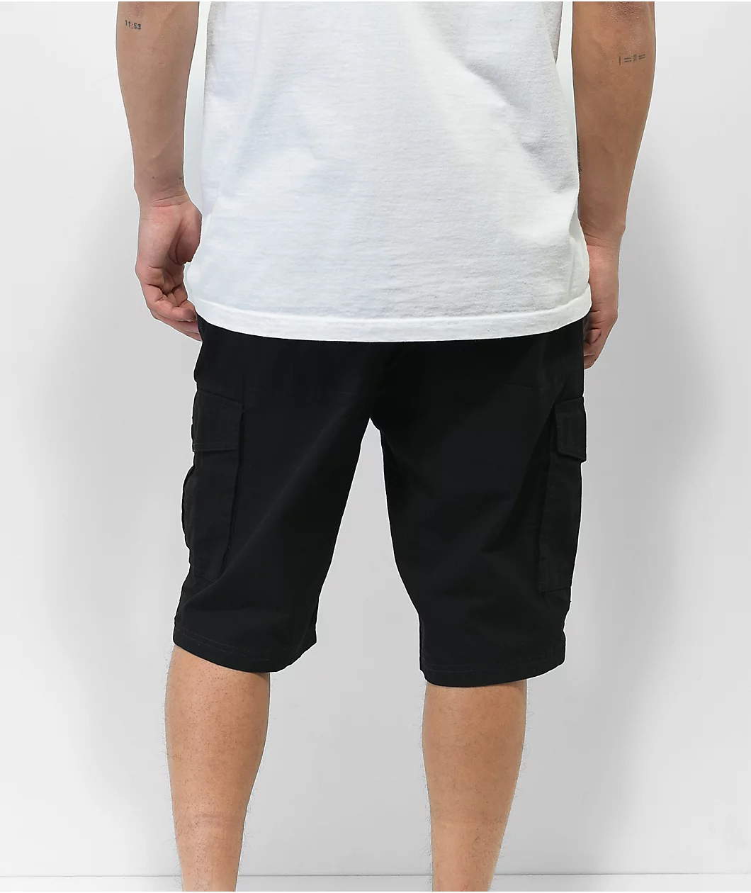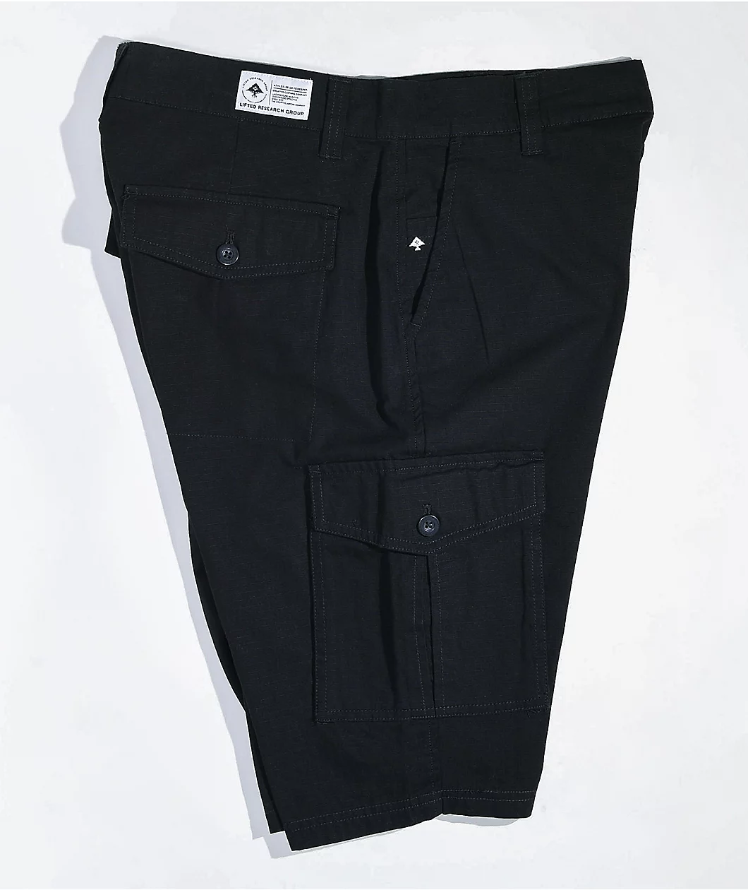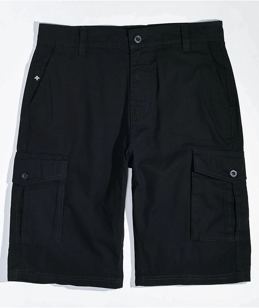 Made from breathable, durable, midweight cotton, the RC Ripstop LRG cargo shorts are sure to be a staple. These LRG shorts have a black colorway and a standard fit, cutting just above the knee. These shorts have two slash hand pockets, a stash pocket on the right hip, two button flap back pockets, and are finished off with a button flap cargo pocket on each thigh.