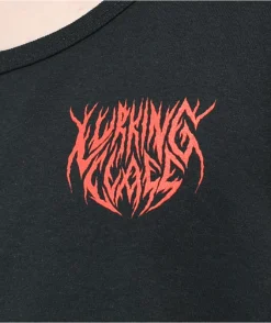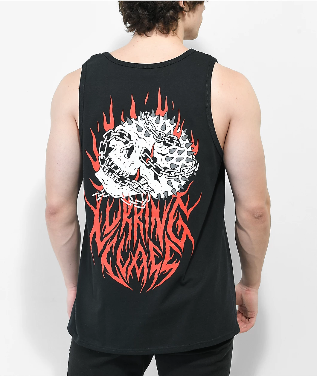 The Impale tank top from Lurking Class by Sketchy Tank is made from soft, breathable cotton, and comes in a classic black colorway. This Lurking Class tank top has screen-printed brand script on the left of the chest, and graphic of skeleton’s skull wrapped in chains on the back.