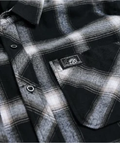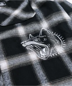 Conceal your visage in style with the K-9 black and white hooded flannel shirt from Lurking Class by Sketchy Tank. A picture of a snarling dog is embroidered beneath the left chest pocket, and Lurking Class’s signature graphics embroidered at the left chest pocket and on the hood add some signature spooky style, so you can look creepy and cool wherever you wander.