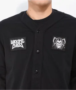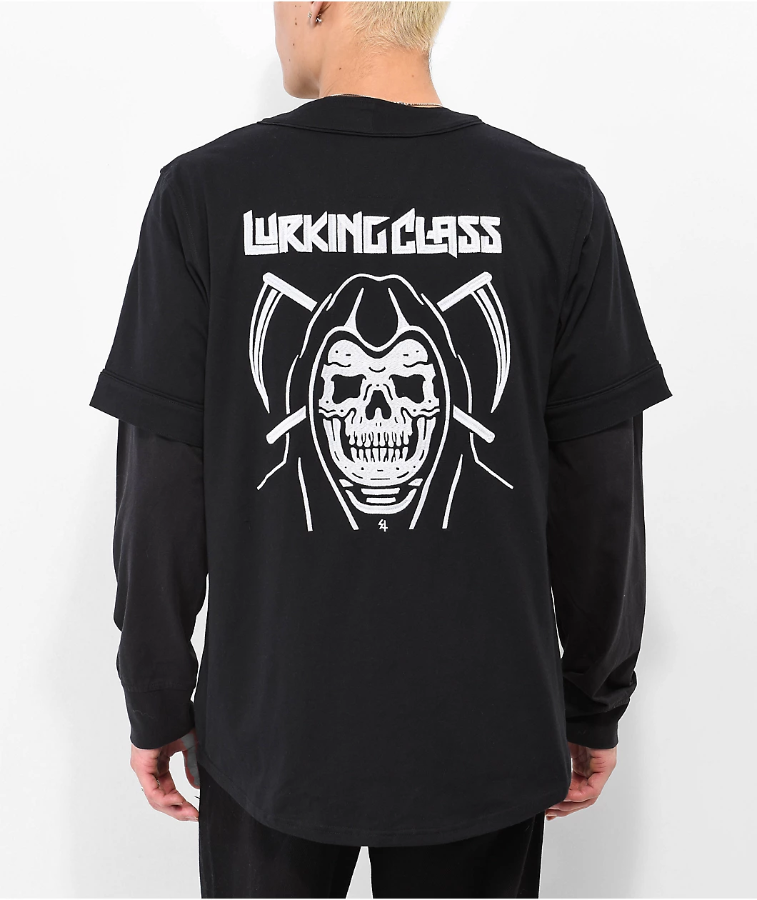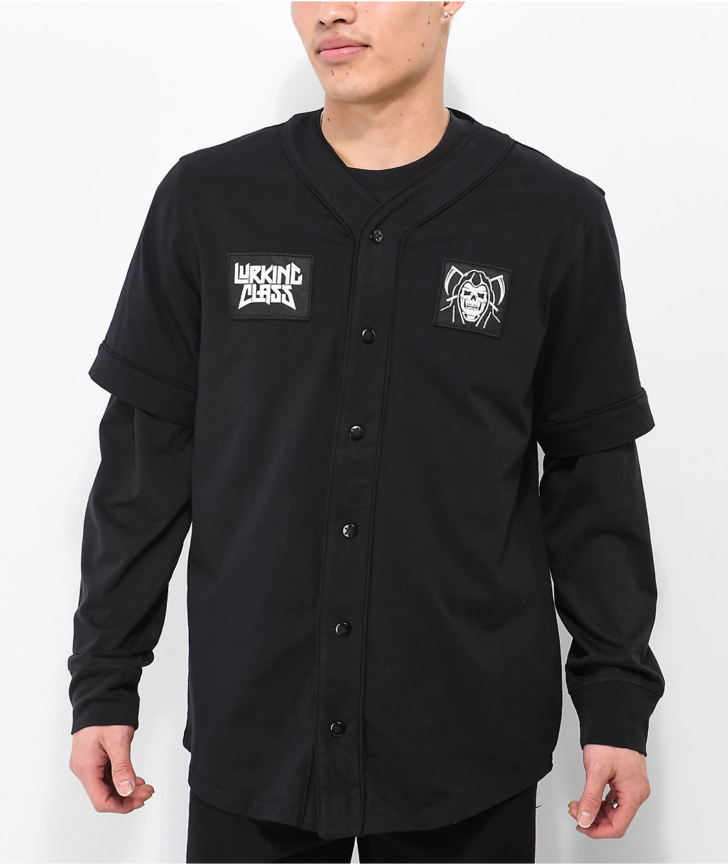 The Metal Scythe 2Fer offers a layered all-black look, as long sleeves are paired to a baseball jersey adorned with woven patches. With a full button up closure, the 2fer is finished with a large embroidered reaper on the back below branding text.