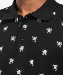 The Spider polo shirt from Lurking Class by Sketchy Tank comes in a black colorway with white spiders screen-printed throughout and a brand patch woven above the bottom hem. This shirt is made of a cotton-poly blend with a traditional turndown collar and 3-button closure for a classic polo look.