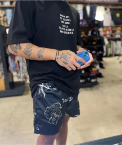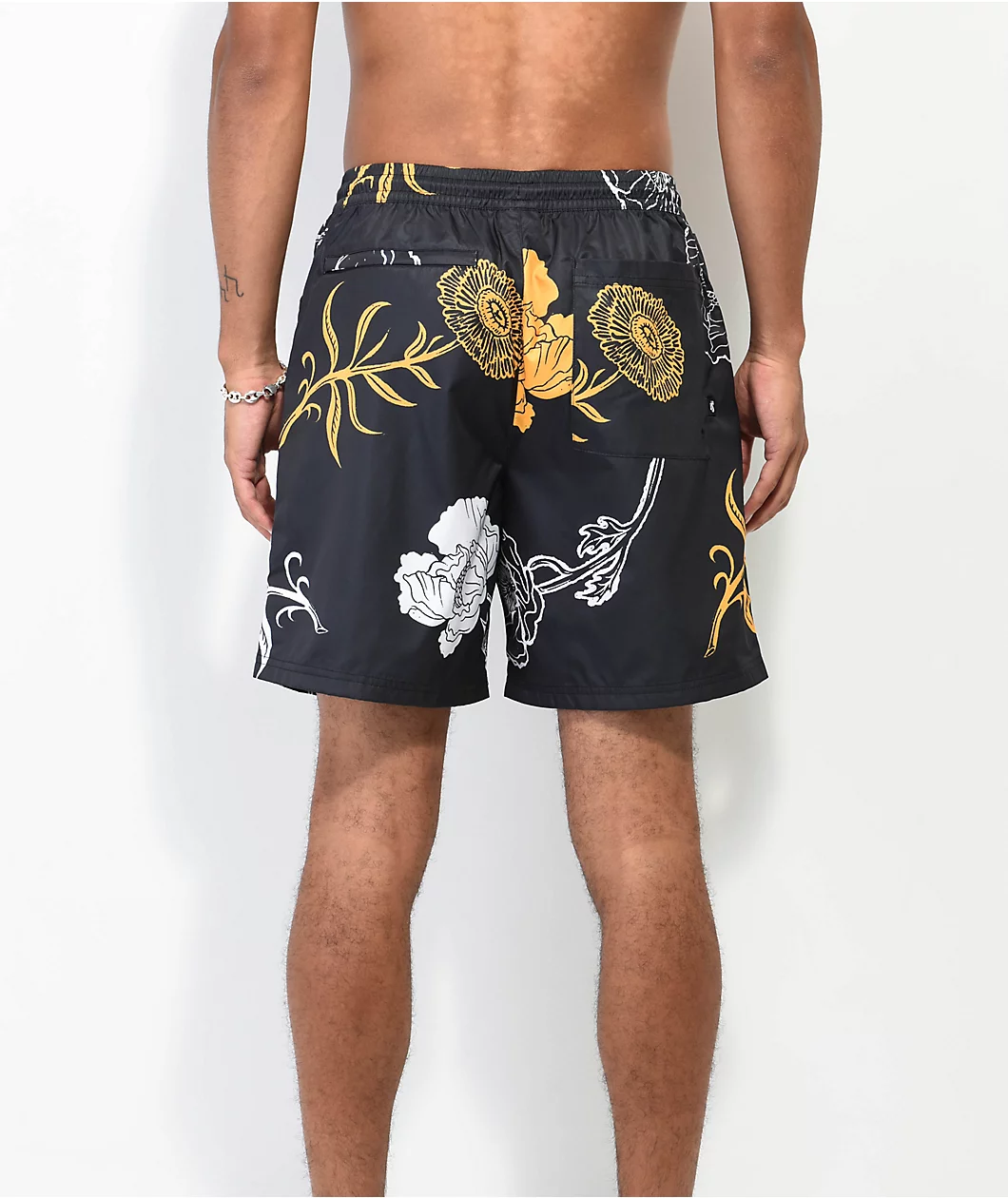 From Nike SB comes the Novelty elastic waist board shorts in a black colorway, with a modern white and yellow floral pattern. With an updated mesh-liner for greater comfort and breathability, the Nike swim trunks have an elastic waistband with an inner drawstring to achieve a custom fit. Made from moisture-wicking polyester, the hybrid swim trunks deliver effortless style in the water, or out in town.