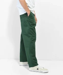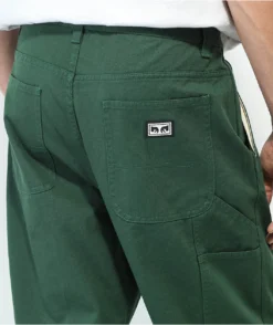 The Obey Hardwork carpenter pants come in a deep green cotton twill construction, with a loose fit through the thighs and calves. With a deep green colorway that makes a welcome addition to any wardrobe, these Obey carpenter pants have a standard 5-pocket construction with extra pockets located along the right thigh. With modern, minimalist stylish throughout, these loose pants are complete with a wove logo tag on the right seat pocket, branded metallic hardware throughout.