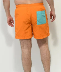 The Color Pocket Odd Future board shorts come in a bright orange colorway with teal accents (including the single back pocket) and a small brand logo embroidered on the right side. These shorts have an above-the-knee length with a drawstring-adjustable elastic waist for a personalized fit every time.