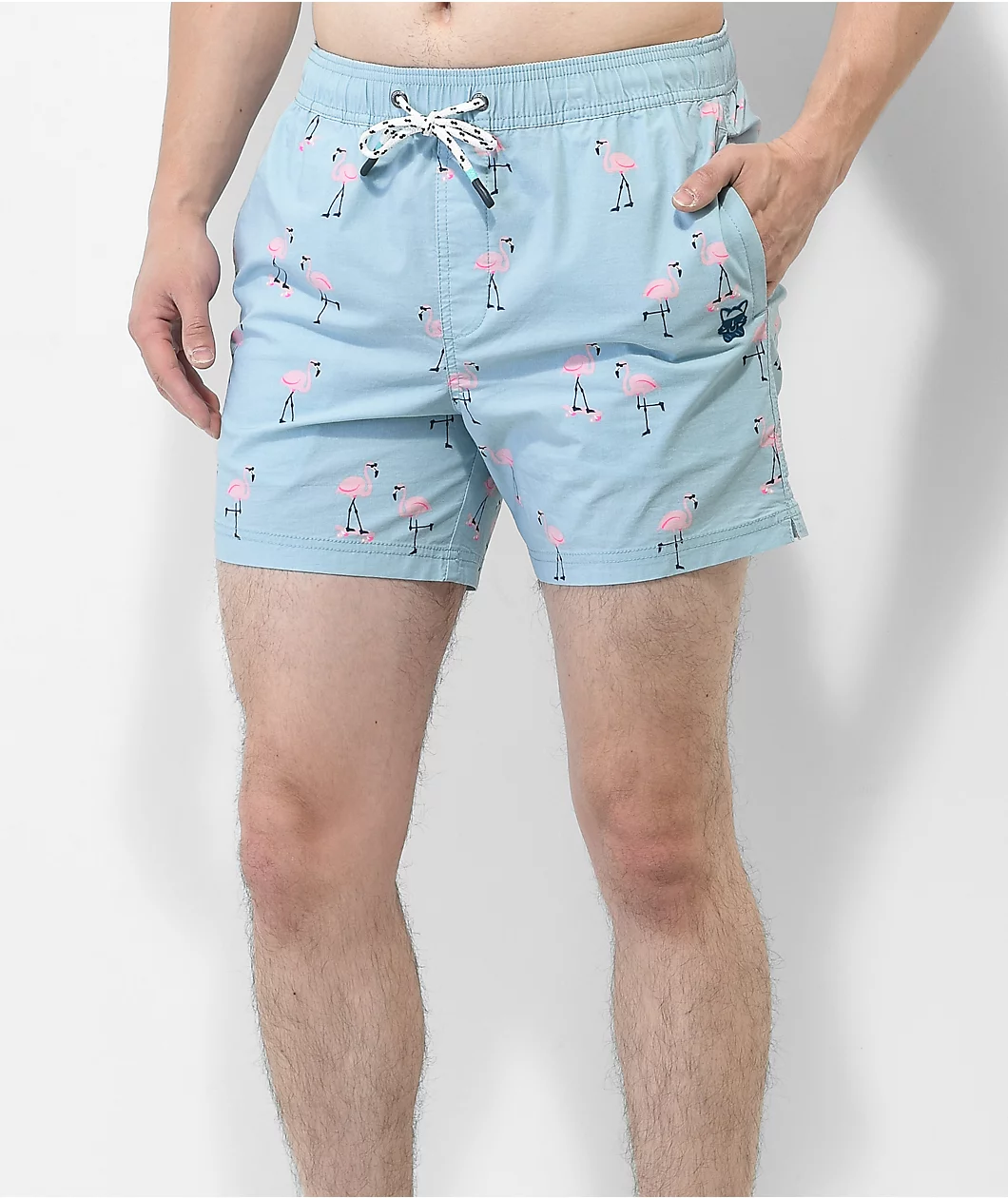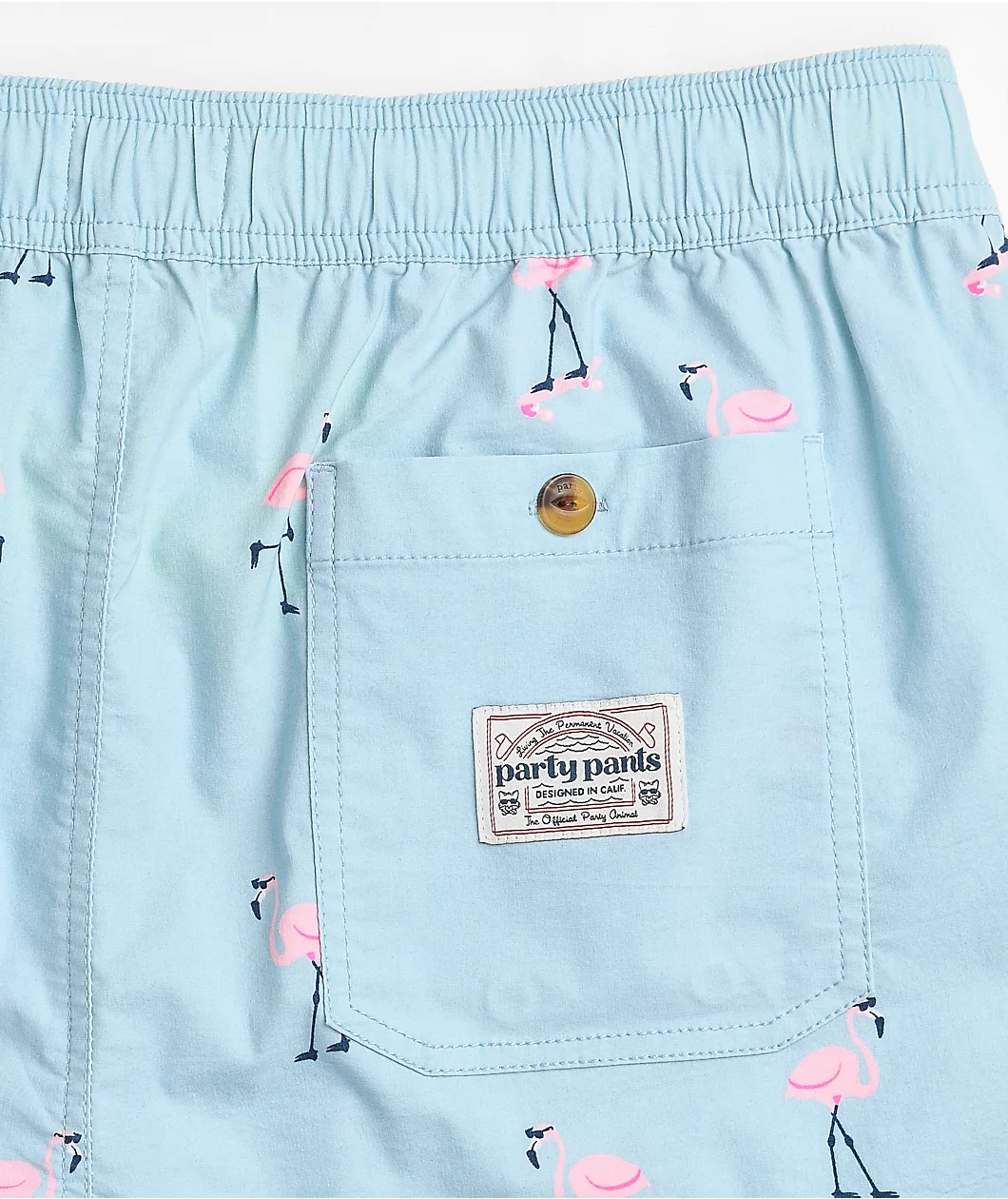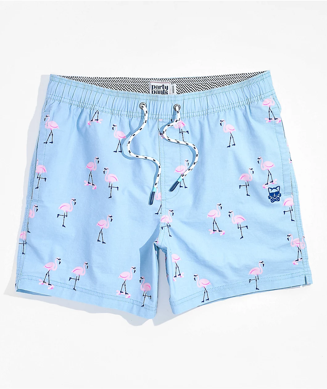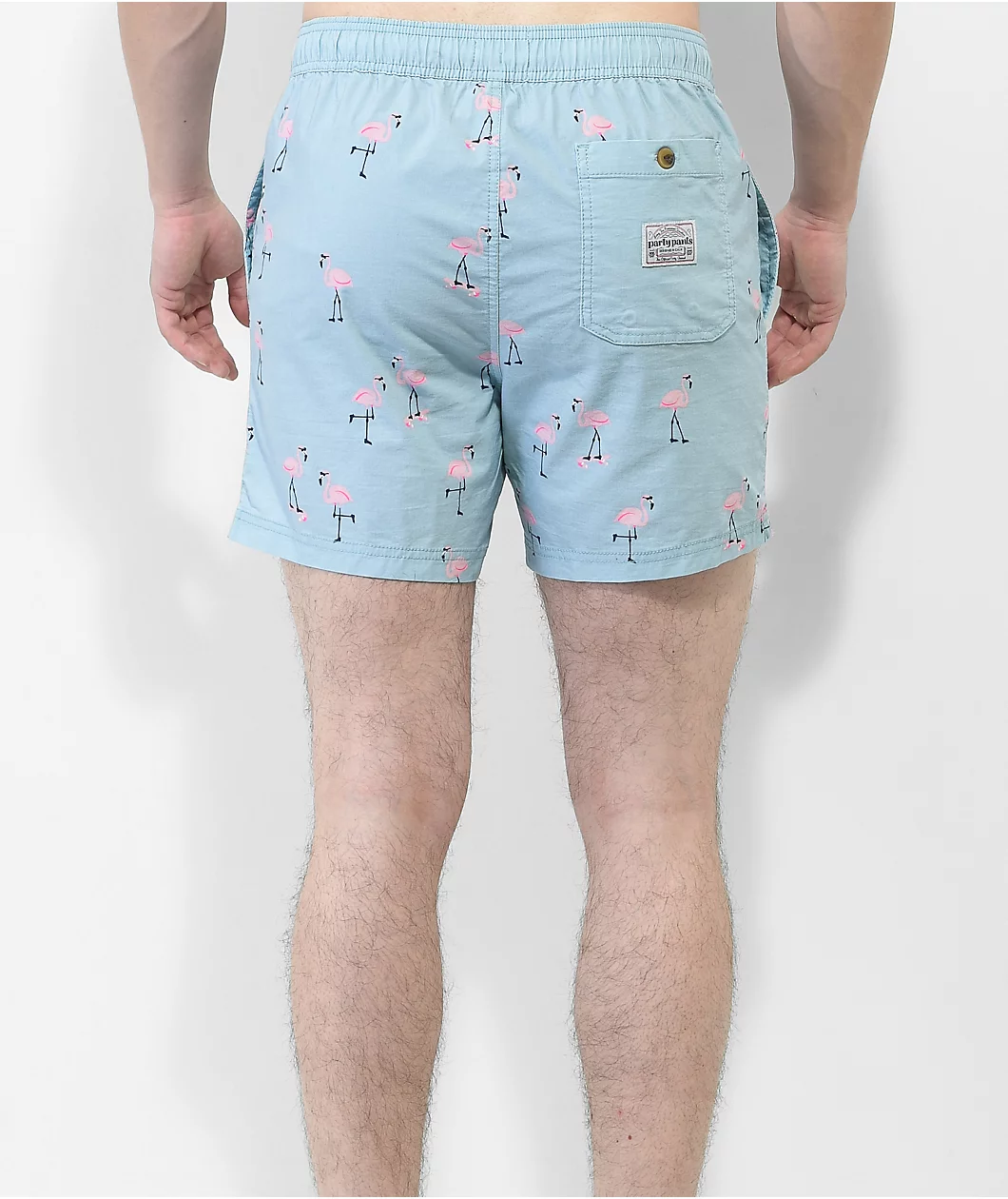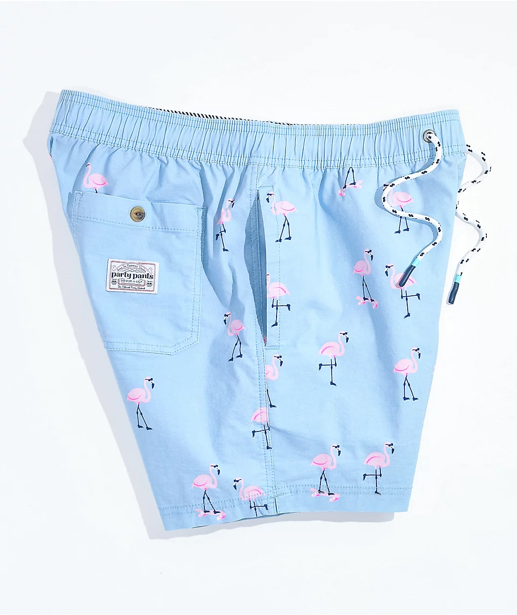Keep your sunny day style looking fly with the Cruiser Flamingos sky blue board shorts from Party Pants! Sublimated flamingo graphics throughout add a quirky tropical touch, while the sky blue colorway keeps these shorts chill. These shorts come with a drawstring-adjustable waist with metal grommets and a couple of pockets at the hips providing space to stash your goodies.