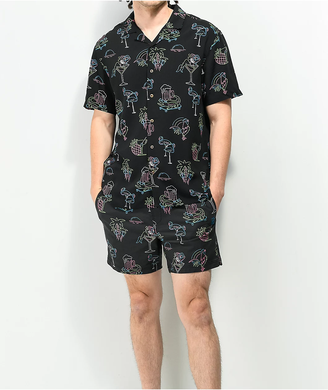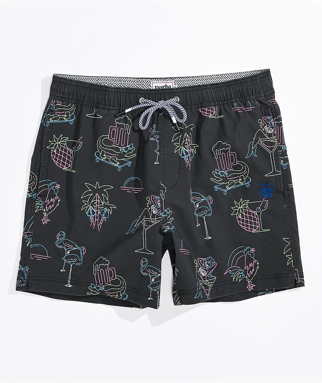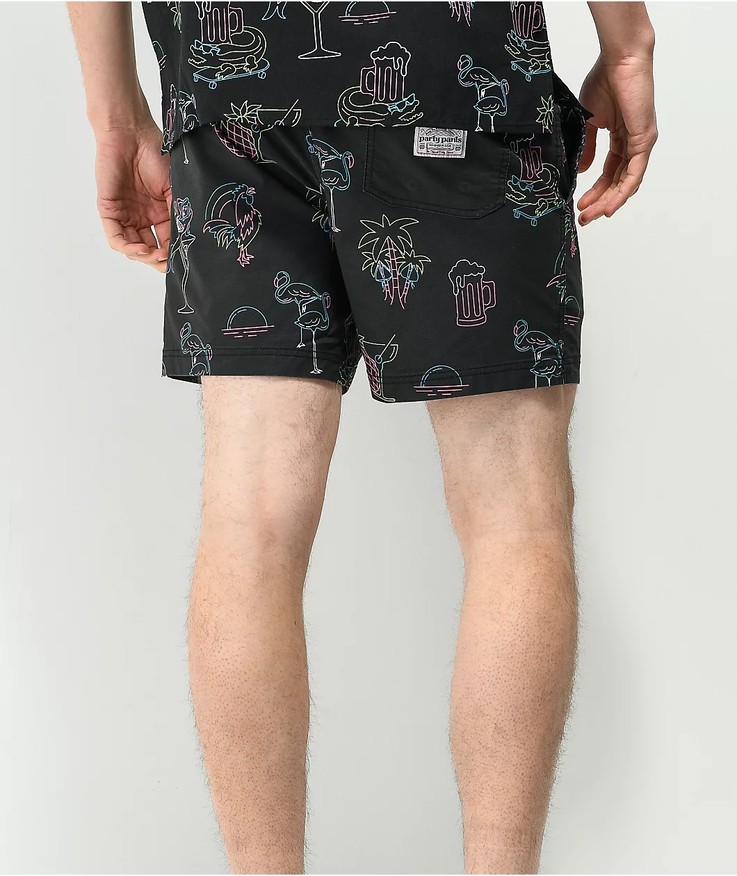 Show off those quads you’ve been workin’ on in the Party Pants Night Out black board shorts! This light, quick-drying pair of board shorts come in a retro, shorter fit, with a drawstring adjustable elastic waist, while the black colorway with sublimated graphics of palm trees, adult beverages, and flamingos gives them a laidback, fun-forward style.