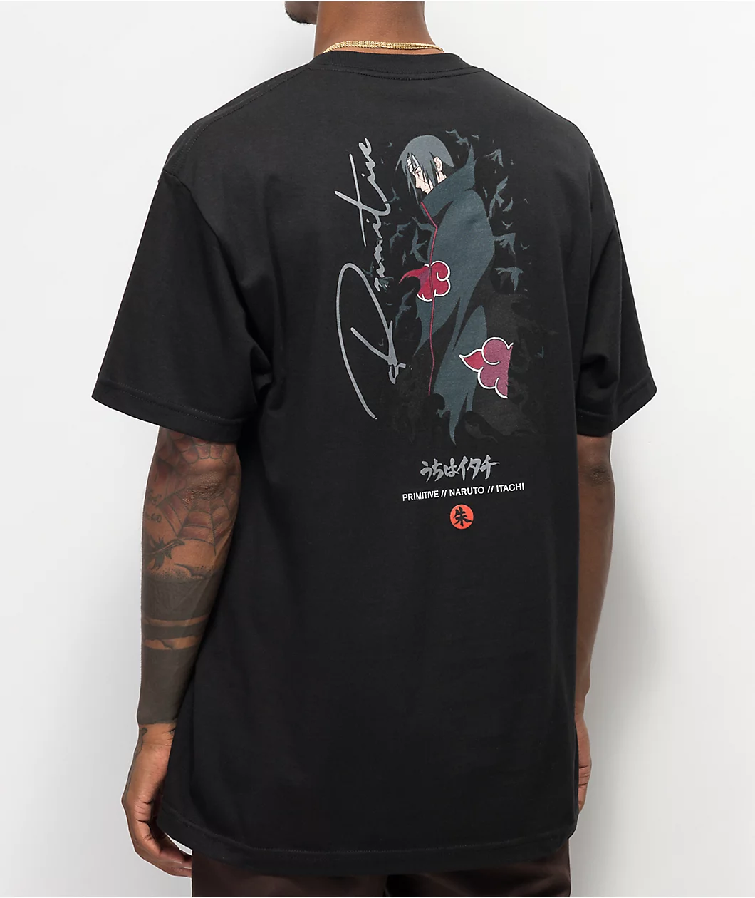 Legendary skate brand, Primitive, and the popular anime and manga series Naruto have teamed up for an exciting collection that will take your style to the next level. The Crows black t-shirt from Primitive x Naruto features a cotton construction in all black, along with a relaxed fit for comfort. Small screen-printed text on the chest in white reads “Primitive//Naruto//Itachi” while the back displays an epic graphic of Itachi Uchiha with grey Primitive logo script and crows flying in the background. A tag-free neckline keeps this tee comfortable, creating the perfect addition to any Naruto fan’s wardrobe.