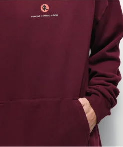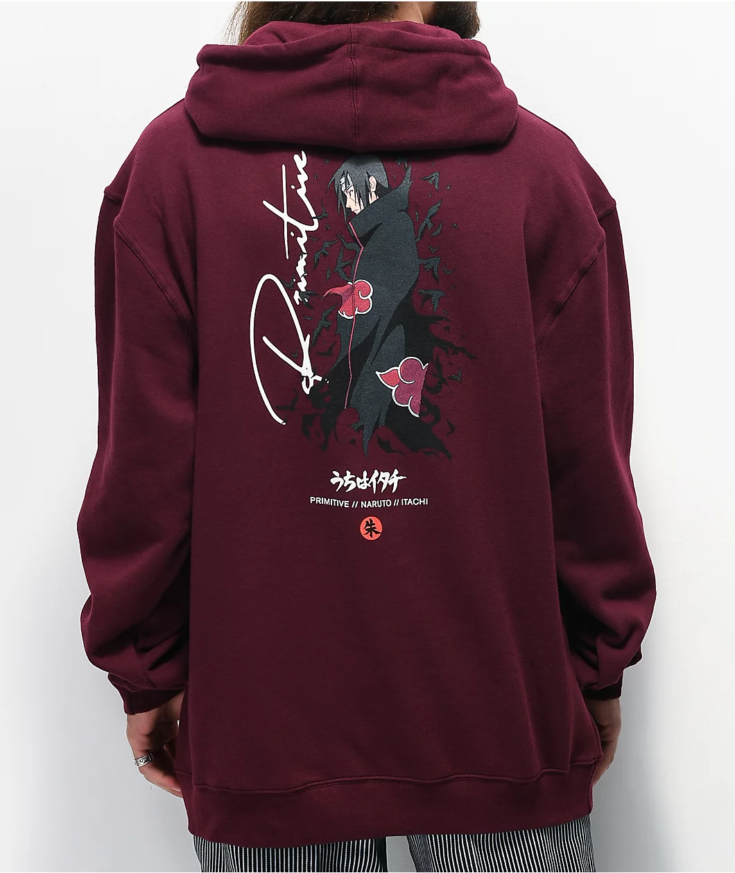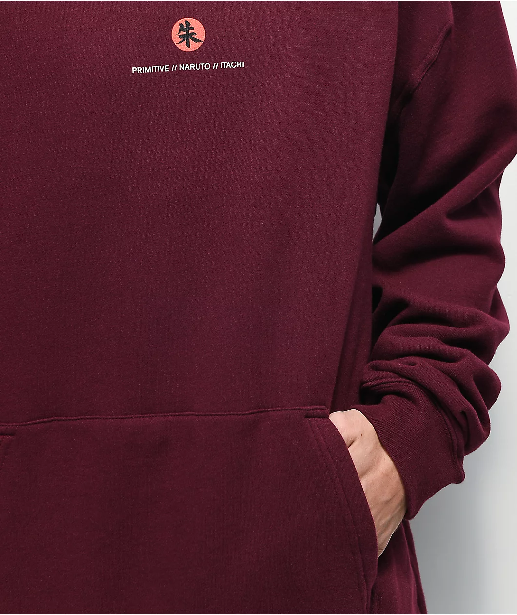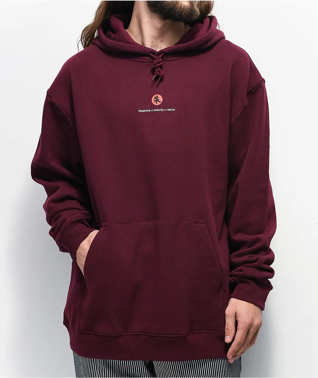 Freshen up your hoodie collection with an influx of classic anime-inspired style and the Primitive x Naruto Crows burgundy hoodie. Fleece lined for comfort and featured in a rich, burgundy colorway, this hoodie is further complemented by screen-printed collaborative logo script on the center chest and a Large graphic of the character Itachi on the center back surrounded by crows and logo script for bold and must-have style.