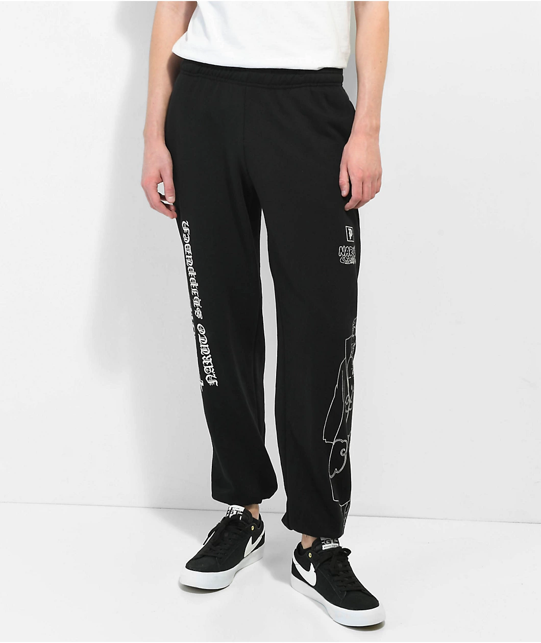 Made from soft, midweight cotton, and featured in a regular fit with a tapered leg, the Hidan black sweat pants from the Primitive x Naruto collection have a timeless feel and look. These anime sweats have an elastic waist with an adjustable inner drawstring, on-seam hand pockets, and a right rear welt pocket. These Naruto sweat pants are finished with silver collaborative logos on each leg and an outlined graphic of Hidan on the left leg.