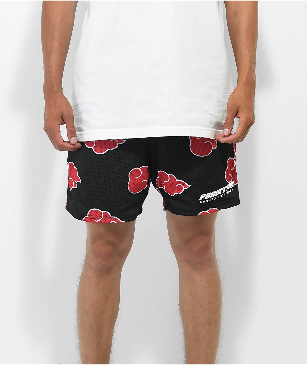 The Akatsuki mesh shorts from the Primitive and Naruto Shippuden collaboration come in a black colorway with Akatsuki print throughout. These polyester shorts feature an elastic waistband with Primitive script repeated and an adjustable drawstring for a secure fit; the perfect combination of comfort and style.