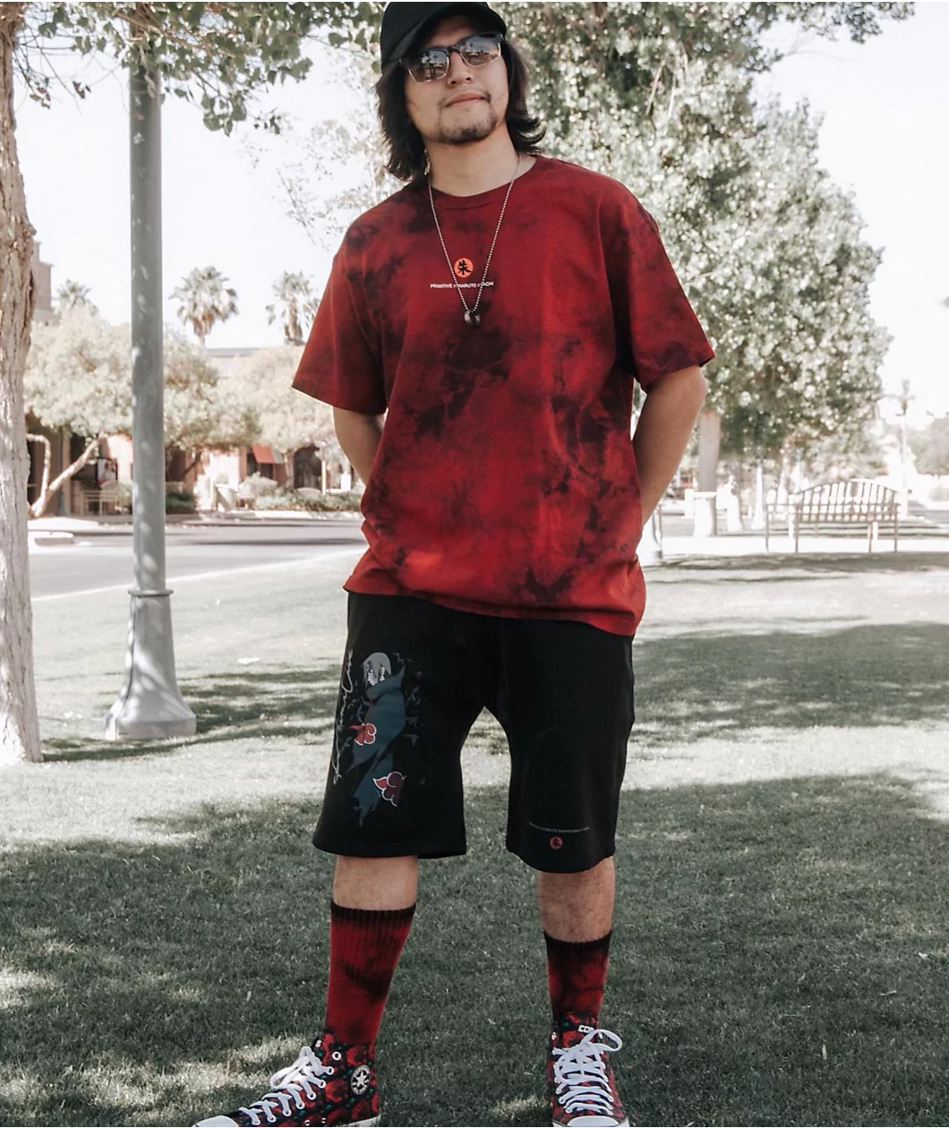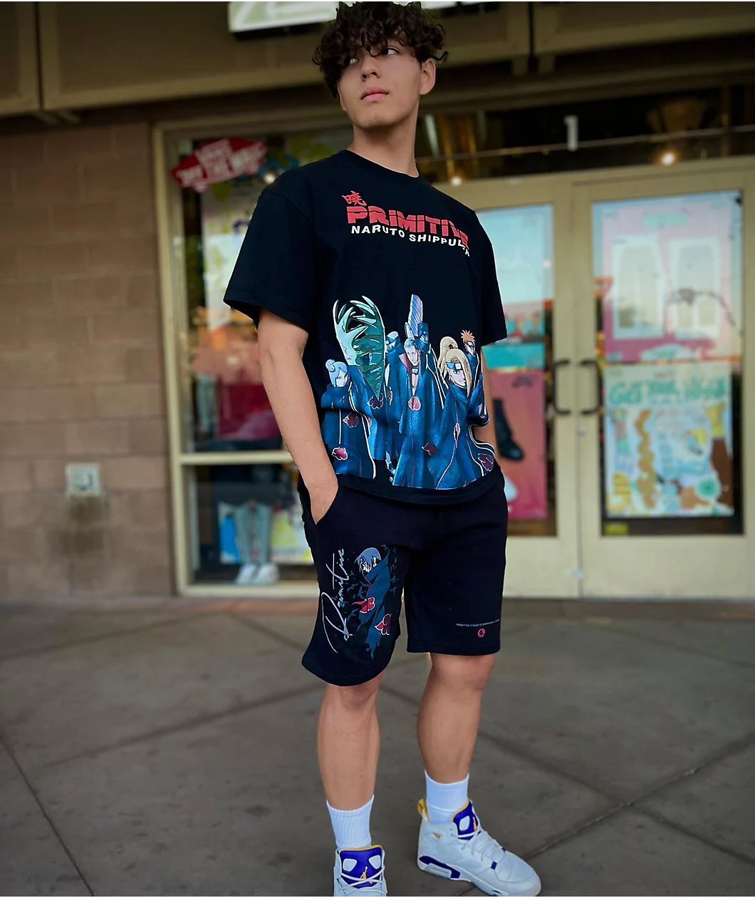 Add some ornithological style into your daily looks with the Primitive x Naruto Shippuden Crows black sweat shorts. Itachi appears on the right leg, surrounded by crows, and Primitive script, while the additional Primitive x Naruto Shippuden script at the left leg opening finishes off the look in slick, branded style.