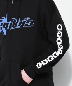 From Pythia comes the Star hoodie in a black colorway, featuring a full zip closure that makes pairing and layering styles easy. This hooded sweatshirt comes complete with Pythia logos on the chest and back, as well as chainlink graphics down both sleeves in white for contrast.