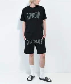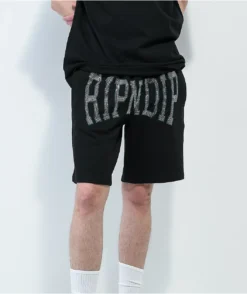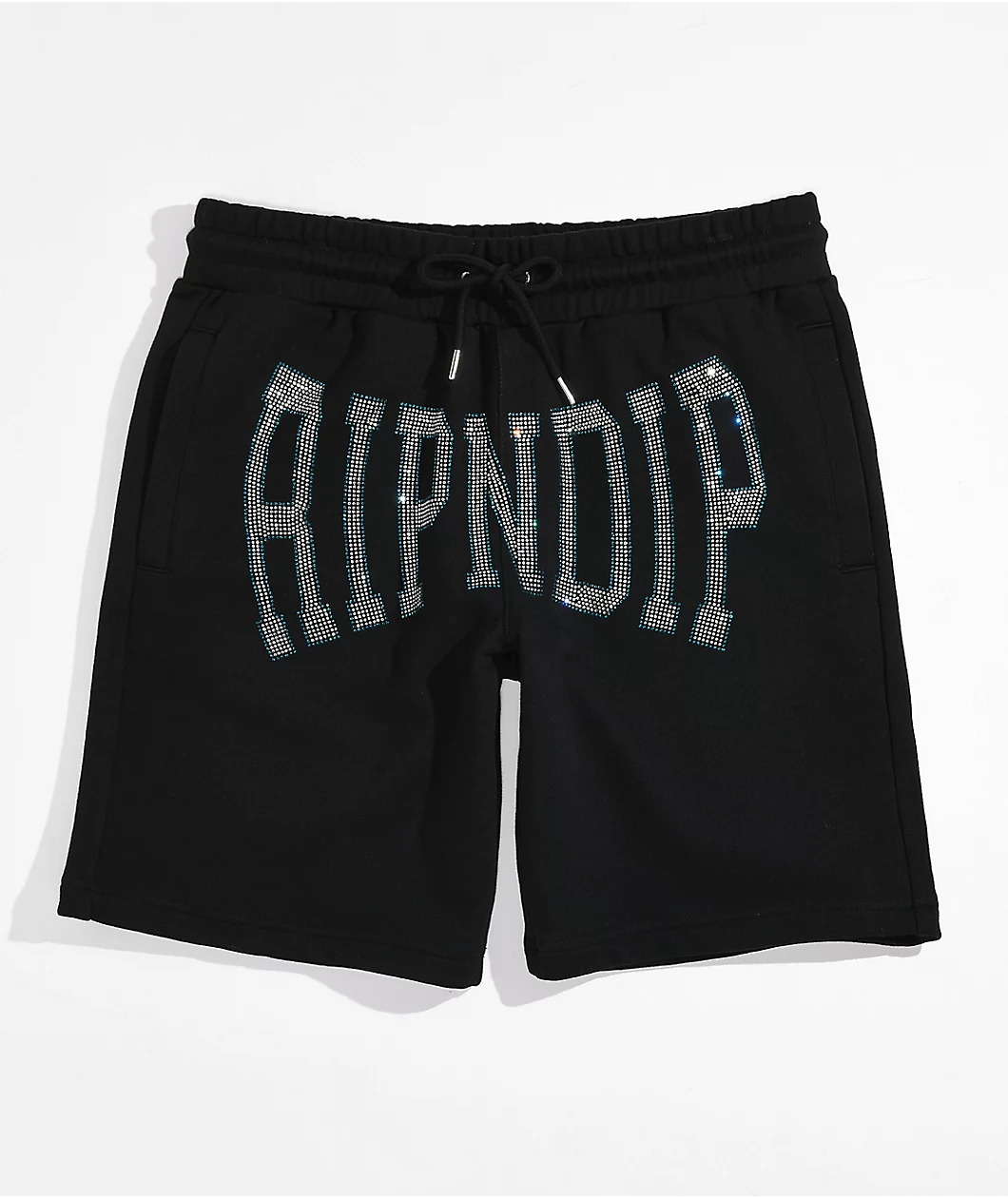 With flashy rhinestone RIPNDIP script adorning the front, the Summer Revenge sweat shorts come in a black colorway. The terry-lined shorts are made of durable heavyweight cotton and features an elastic drawstring waistband for a comfortable fit. The RIPNDIP shorts are finished with branded metallic accents and a woven label located on the right seat pocket.
