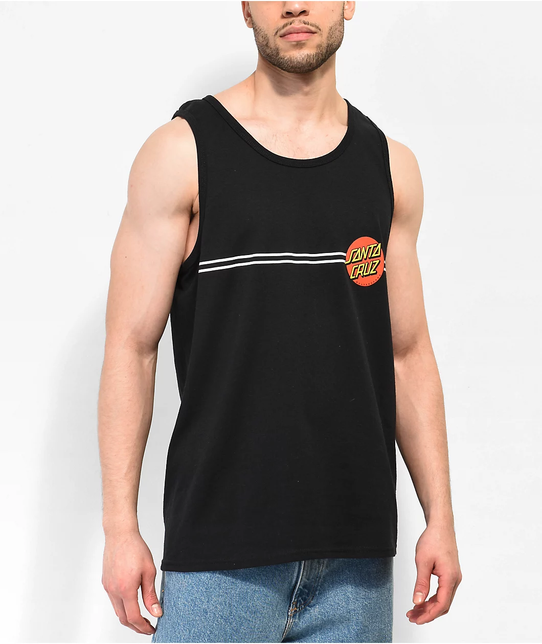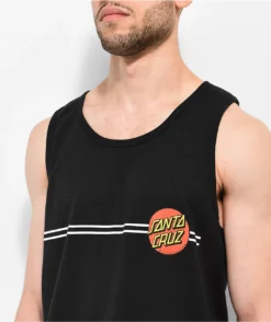 The Classic Dot tank top from Santa Cruz comes in a black colorway, adding a pop of color with the brand name left of chest in an accent of red and white horizontal striping across the chest. On the backside of this warm weather tank is the same brand graphic enlarged for all to see, coming complete with a durable cotton construction and sleeveless silhouette for comfortable all-day wear.
